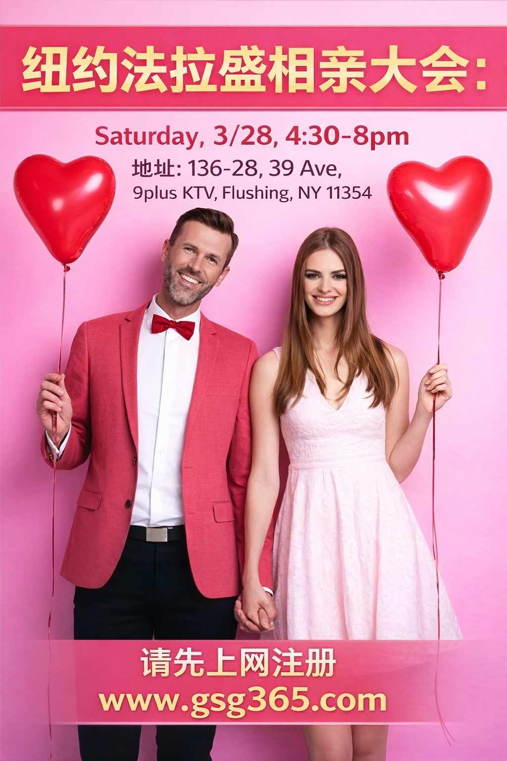 相亲大会 (爱之缘 鹊之桥活动) 3/28 特邀嘉宾&主持著名脱口秀演员英子( Global Single Group Activity 注册 www.gsg365.com/欢迎广告赞助商 娱乐, 广告商讯, 文娱频道, 新闻, 活動信息, 社会, 社区新聞2026-03-21