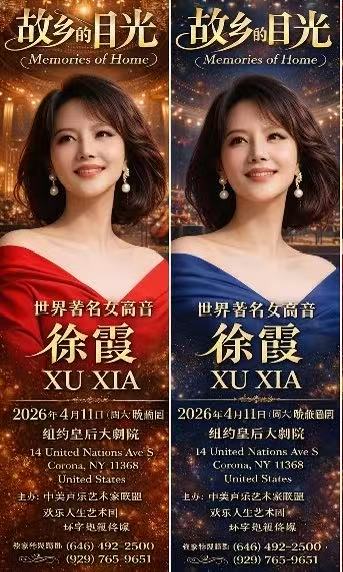 徐霞 –著名女高音歌唱家,教授-《故乡的目光》独唱音乐会 4/11/纽约法拉盛皇后大剧院隆重上演 娱乐, 广告商讯, 教育频道, 文娱频道, 文学, 新闻, 活動信息, 生活, 生活美食, 社区新聞, 科技, 艺术2026-03-10