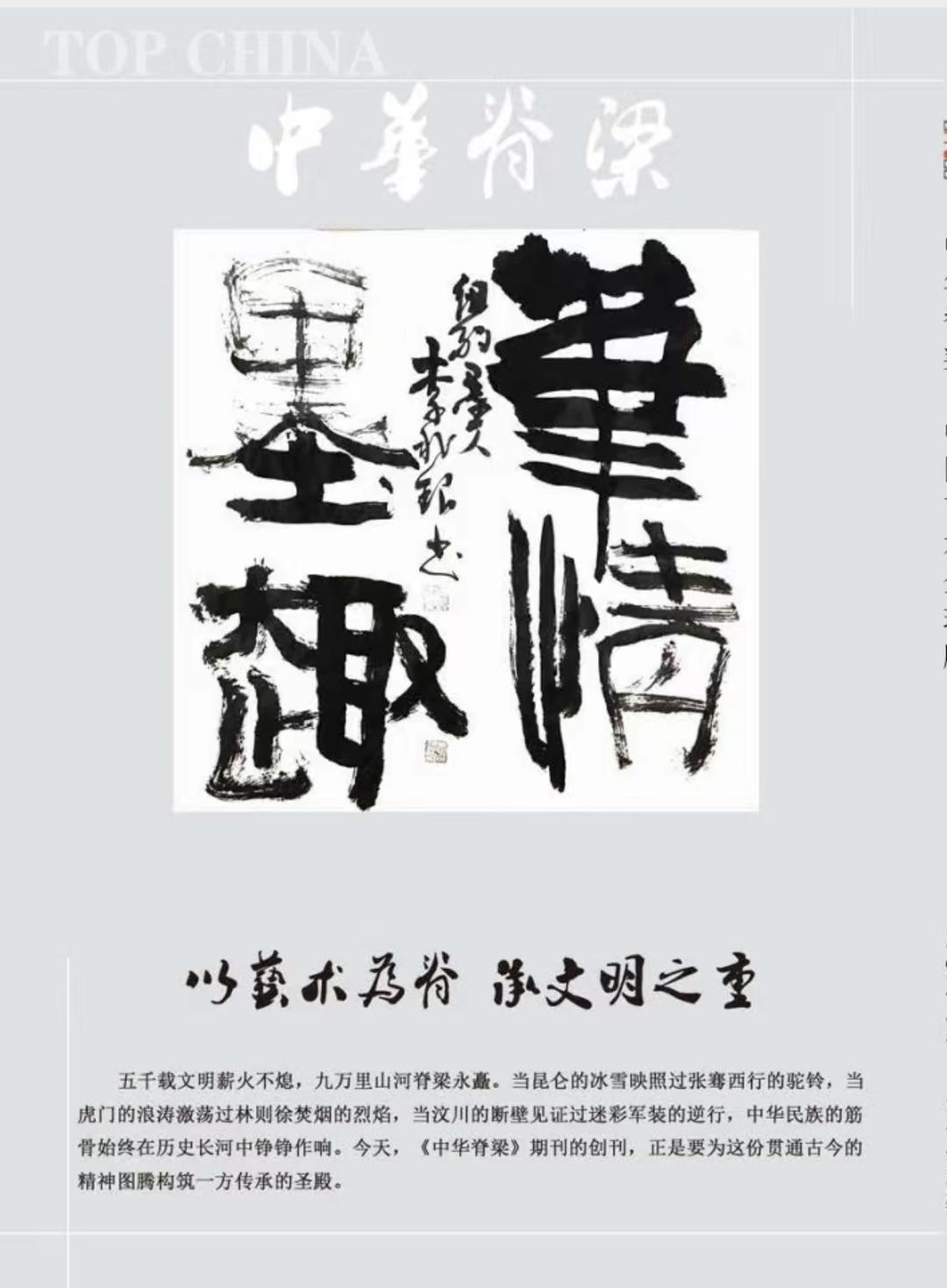 「中華脊梁」周刋以弘揚中華民族精神、歷史文化為主題的書籍。以笔为刃、书写时代风采,以文为炬、照亮精神脊梁。特定的《中華脊梁》周刋,而是一個中国艺术全球版刊物、值得收藏。