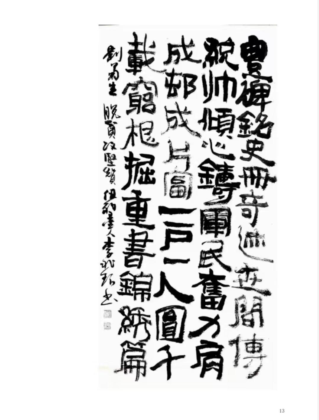 李兆银先生的书法造诣深厚,他的作品融合了古朴、苍劲、典雅、潇洒的艺术特色。他的隶书取法东汉隶书成熟期的碑刻,同时融入简牍书法的意趣,用笔方圆兼备,线条刚柔相济,结体方整平稳,章法自然老到,作品中既有雄浑大气的一面,又蕴含着灵动的天趣。其行草书苍劲有力,浑朴洒脱,笔势凝重洗练,笔法变化丰富,在严谨的法度中展现出自由奔放的气质,彰显出中国书法的独特魅力。作為藝壇楷模,李兆銀先生治藝嚴謹而為人謙遜,其藝術品格體現於三方面特質:一則以開放胸襟汲取多元養分,在跨文化語境中確立獨特風格;二則恪守書道精髓,於創新中傳承筆墨文脈;三則通過學術交流促進藝術對話,使融合書法成為聯結東西的審美橋樑。這種兼具突破性與傳承性的藝術探索,正為當代書法開闢出充滿可能性的新航向。