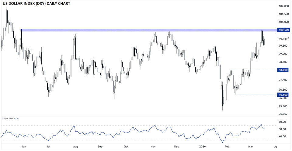“展望未来,10个月高点100.50是需要关注的关键水平,突破该水平将打开下一轮上涨至101以上的机会。”嘉盛集团全球研究主管韦勒(Matt Weller)对腾讯新闻《潜望》表示。
