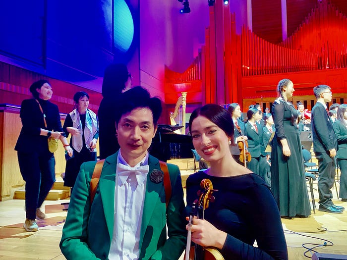 音乐会主角之一首席小提琴演奏家Marina Martín与国际主持人王国权合影留念