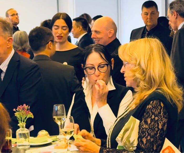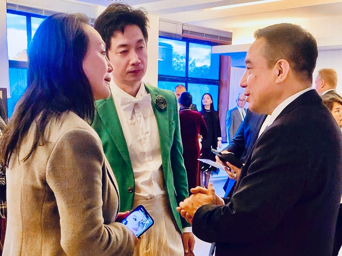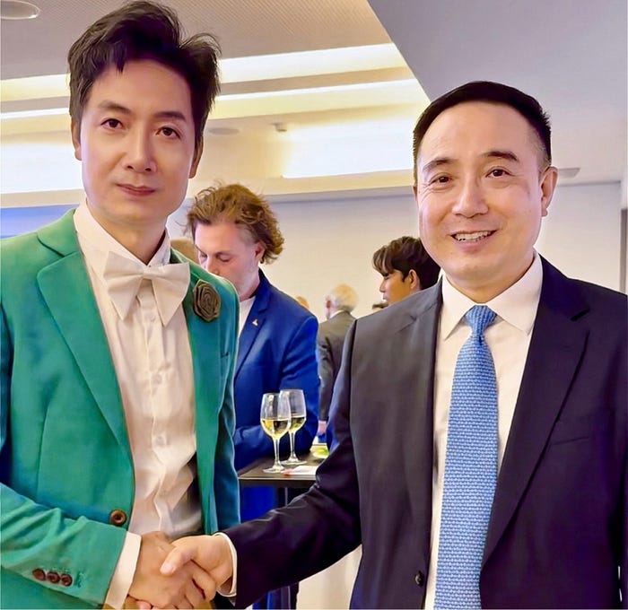 在音乐会前的雅致酒会上,数十位贵宾出席,现场气氛热烈而尊贵。国际知名表演艺术家、权威期刊《国际诚信与品牌》(INTEGRIA)总编辑大宋佳女士,以及被纽约州参议院和纽约市议会官方授予“情歌王子国际主持人”荣誉称号及证书、著名的歌手与国际主持人王国权(Prince John)先生,作为贵宾应邀出席。蔡润大使与朱京公使在百忙之中抽出宝贵时间,与两位艺术家进行了亲切而深入的交流。蔡润大使以儒雅风范与深刻洞见,展现了外交家的卓越气度;朱京公使则以温润的笑容和精湛的专业素养,赢得了在场贵宾的由衷敬仰。尽管时间有限,两位大使仍以开放包容的姿态,与大宋佳女士和王国权(Prince John)先生共话文化交流的深远意义,彰显了中国外交的恢宏气魄与人文温度。