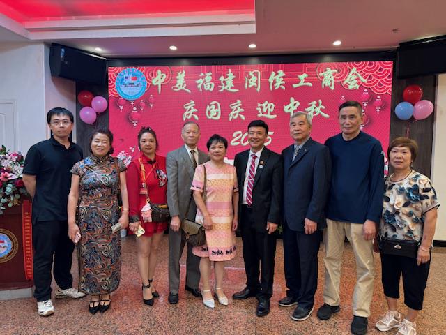 9月29日、中美福建闽侯工商会在纽约举办"庆国庆、迎中秋"联欢会在纽约金泰大酒楼举行。参加今天活动有中国驻纽约总领馆领事向裕韬领事、章锐领事、中美福建闽侯工商会主席池洪贵、总理林继庭、执行主席张开国、议长林秀珠、第一常务副主席赵金凤、监事长潘建明、理事长陈发开、秘书长杨宗佃、英文秘书长高嘉懿、办公室主任黄建乐、荣誉主席郑思棋、苏焕光、郑泉财、郑修淦、李勤锬、林铮、陈爱杰、张君铿、张胜旺、邱清刚、赵汝铿、赵汝榕、林耀(女)、黄群金、郭绍铨、张贤胜、吴振文、方碧兰、林鸿珍、郑祥乐、方强、焦圣安、张秀萍、张珊珊、何启位,林慈飞、林庚生、吴丽明、陈日向、陈诗文、陈诗文、林淑华、林燕芳、吴玉金、林日、刘秀华、刘心勇、张增钦、赵明文、方强、林立华、林平、邓汉超、陈巧林、陈艳燕、陈正寿、陈善锦、张钦国、陈春斌、潘碧燕、洪利、李青松等以及闽籍侨领等180多位参加活动。