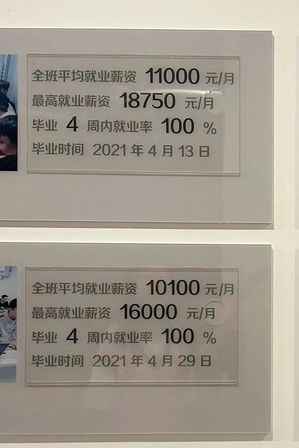 市场捕捉了这个焦虑。程超和王朋奕来自同一个大学,都选择了“优就业”培训班。这是和学校合作的实训基地。王朋奕事后回想,那几乎是陷入一场“美梦”中。培训班的墙上挂着和他们学校领导的合照,以及就业率90%、100%的优秀毕业班。承诺包住宿,意味着“一条心好好学就行”。师资力量都是“有大厂经验的老师,北京入职的”。