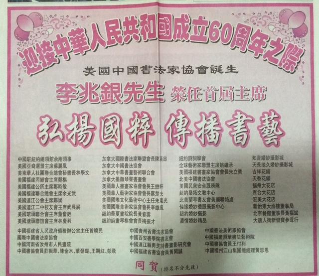 2009年,李兆银先生的艺术事业迎来了重要的里程碑。他创办了海外第一网站——美国书画网,为海外的书画爱好者提供了一个交流与展示的平台。同年8月16日,他又一手创立了美国中国书法家协会,旨在团结海外的书法爱好者,共同推广中国书法艺术。协会成立后,举办了一系列丰富多彩的书法活动,吸引了众多华人华侨以及美国当地民众的参与,让中国书法在异国他乡逐渐生根发芽。2012年9月16日,纽约书法院成立,进一步推动了书法教育和研究在当地的发展。