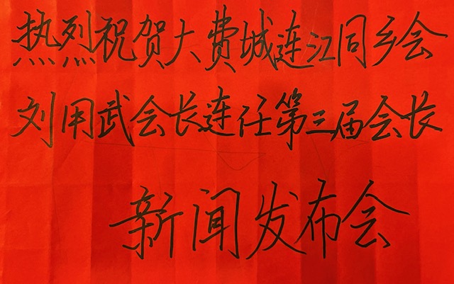 10月7日晚,美国大费城连江同乡会(以下简称同乡会)在费城唐人街友缘酒店举办刘用武会长连任第三届会长新闻发布会。参加发布会的有会长刘用武、执行会长林成枝、理事长杨定增、监事长王金登、秘书长杨行武、第一常务理事长刘景汉、第一常务副会长余盛锋、第二常务副会长陈宝第、财务长邹传标、常务副会长杨定正、赵世法、胡建兴、杨兴勇、冯月云、副会长陈扬文、卢丽容、林成铿、柳永胜、陈振、