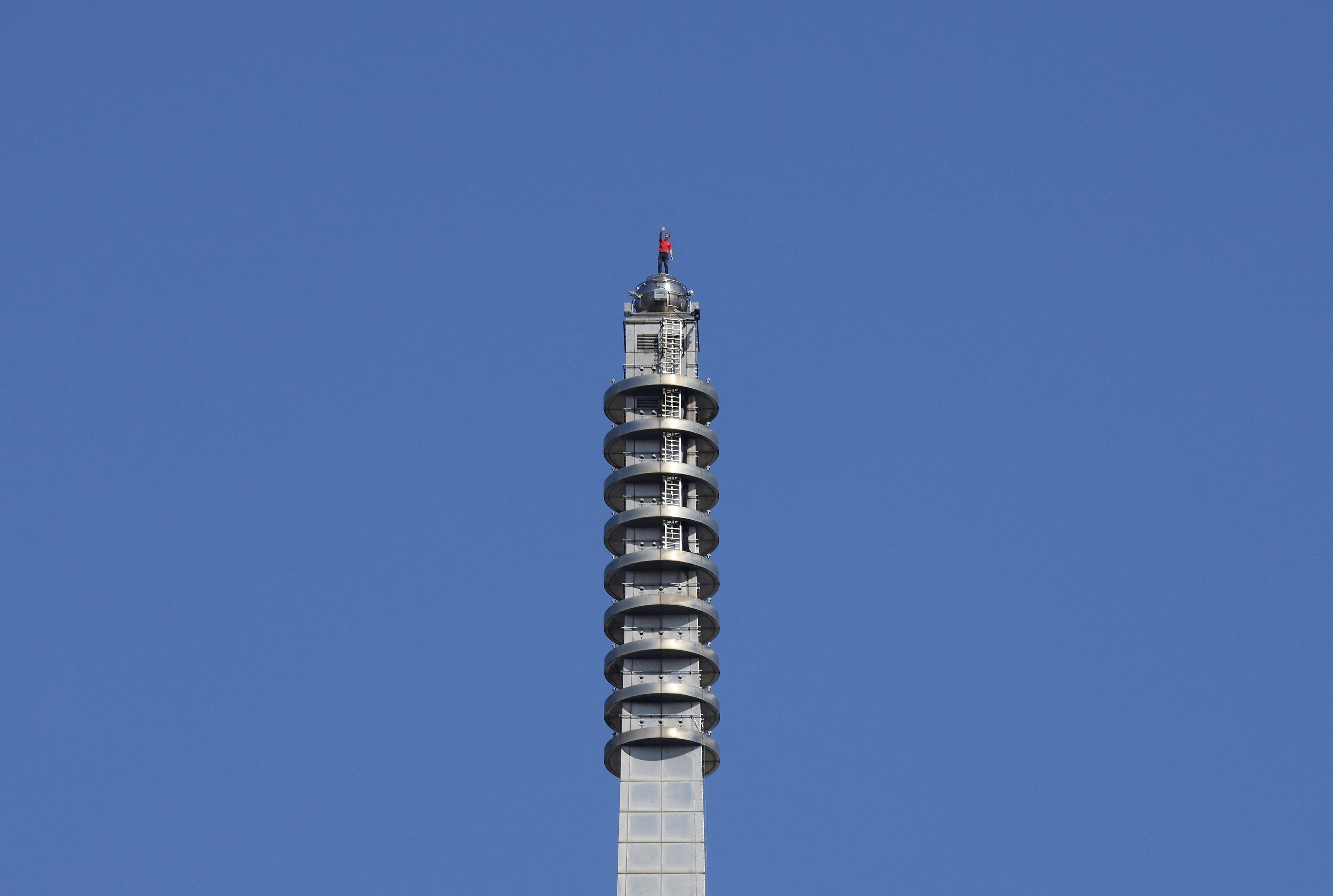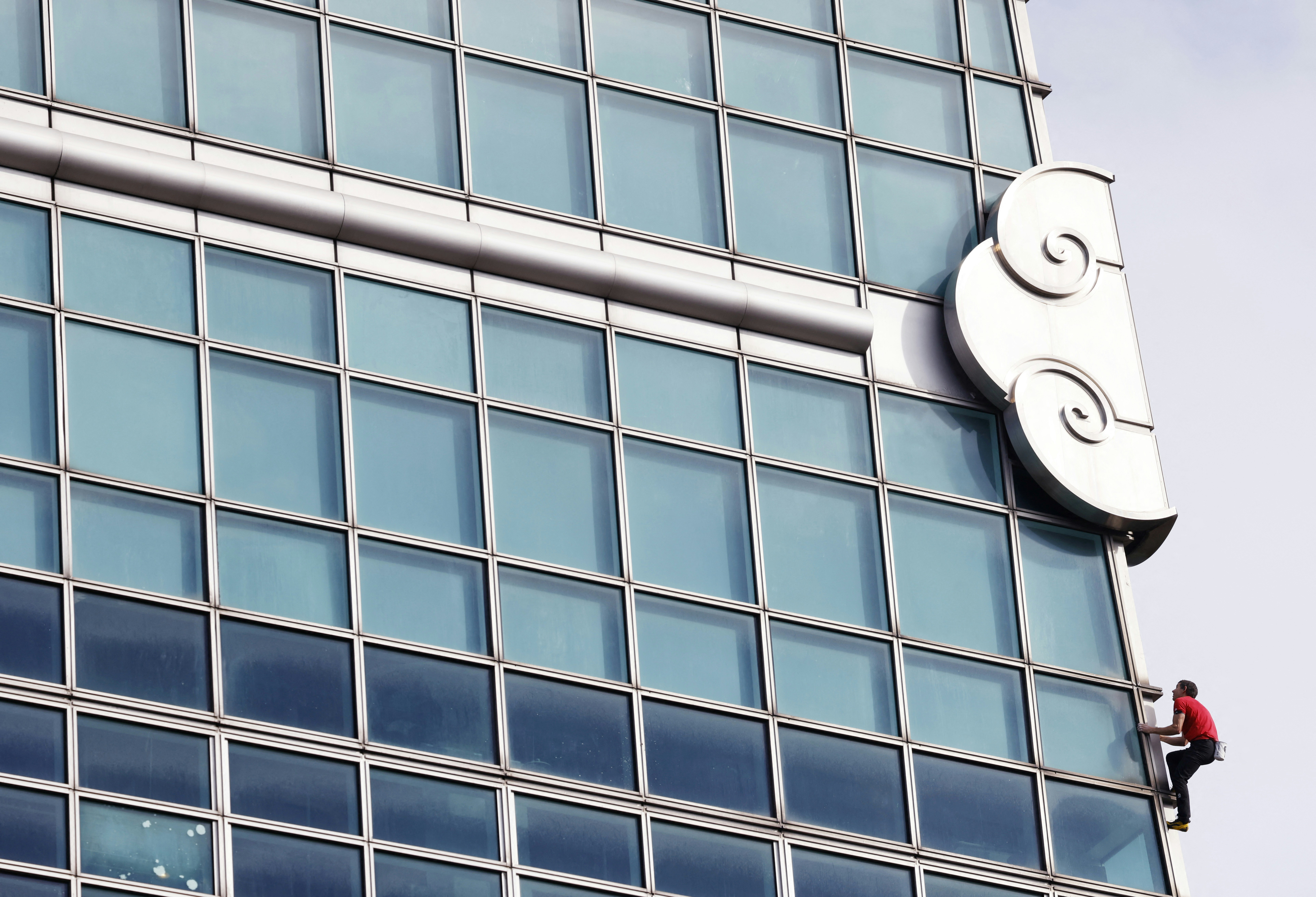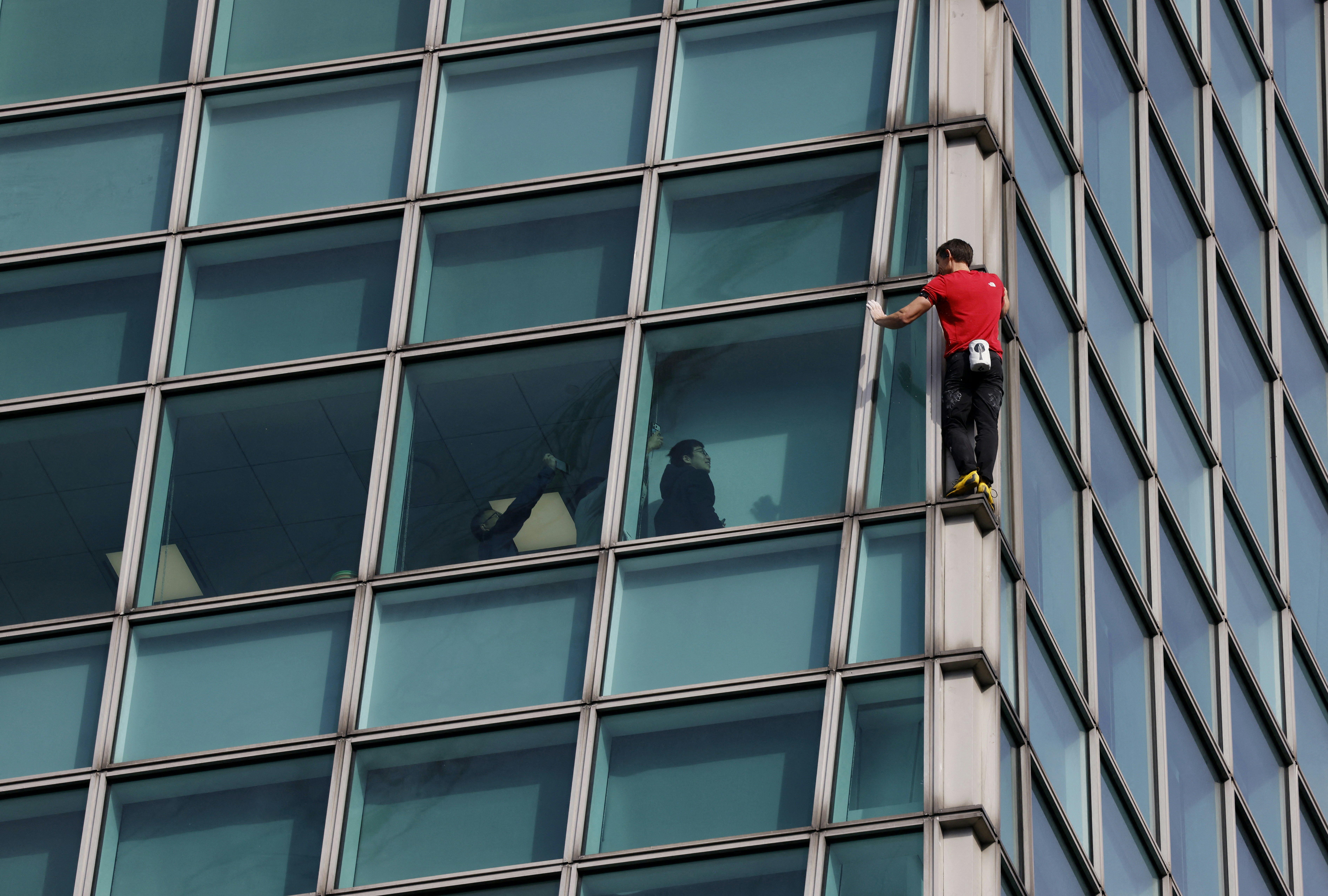Alex Honnold练习攀登时与台北101大楼办公人员对视。(threads)