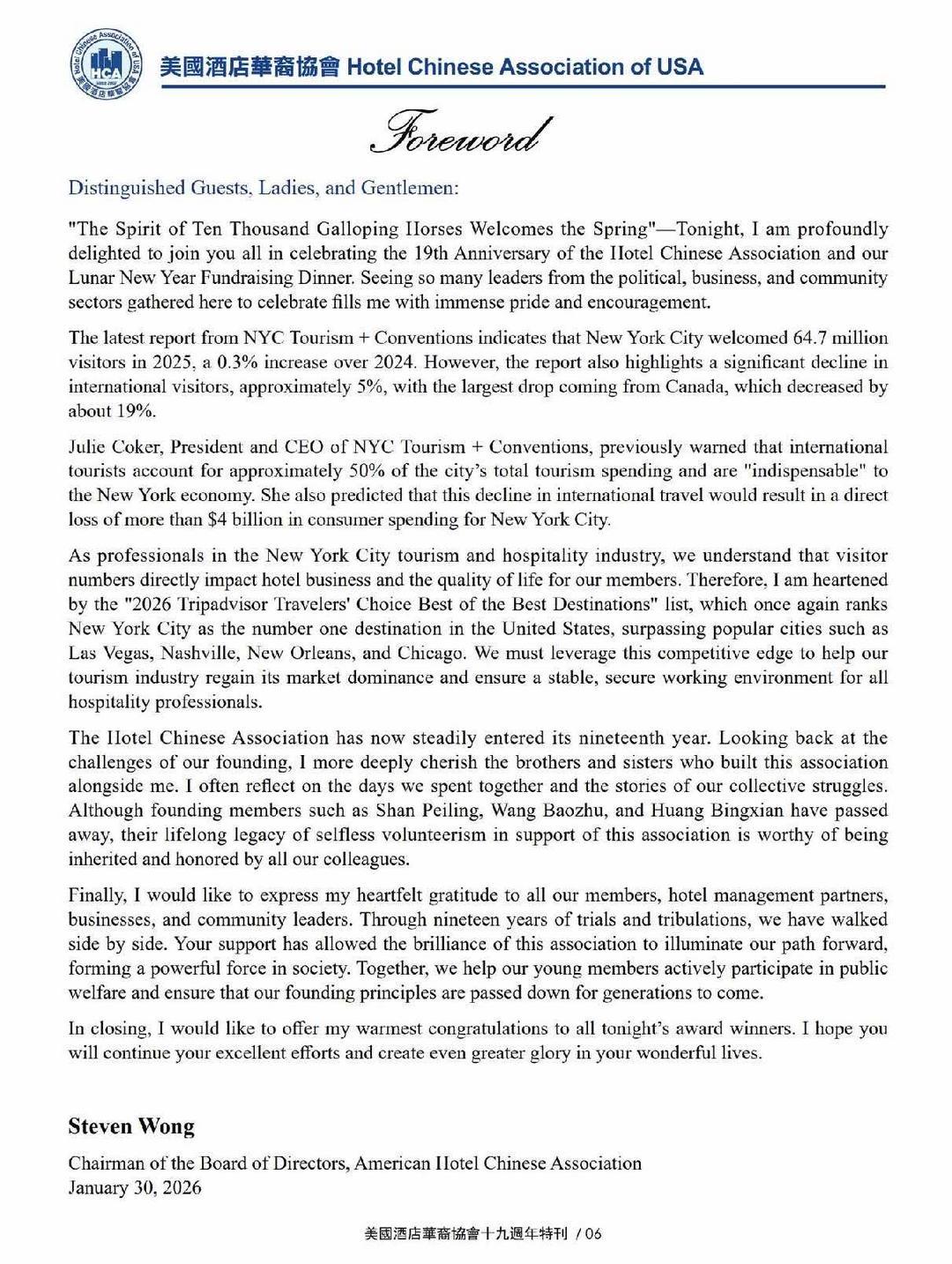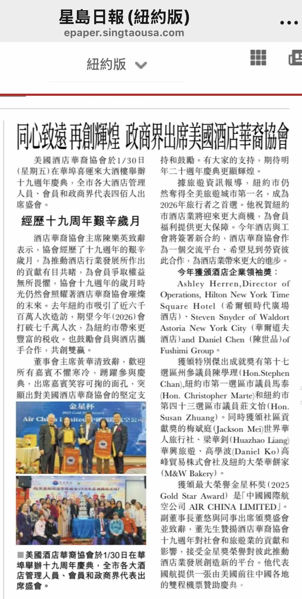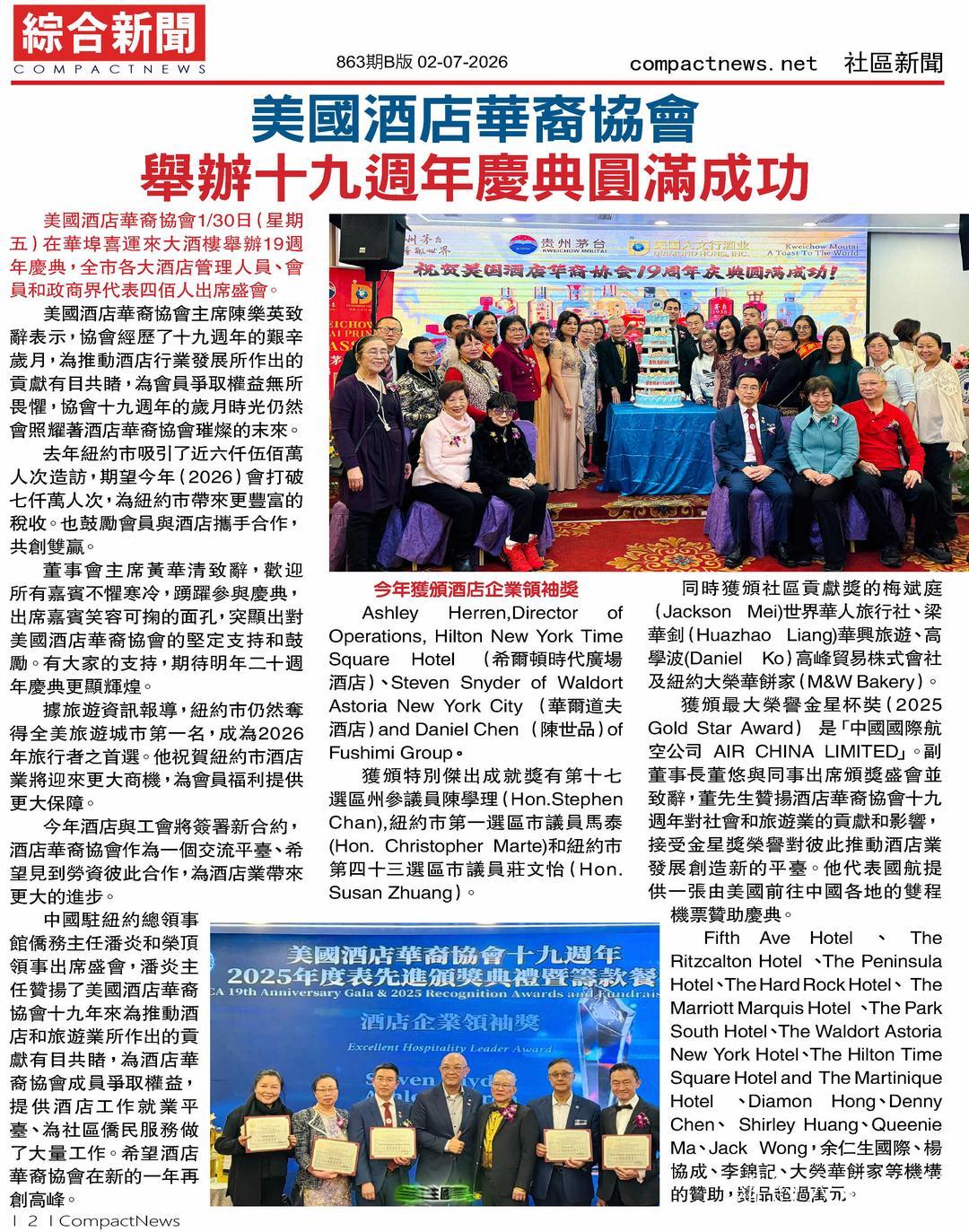 同心致遠 再創高峰 美國酒店華裔協會舉辦19週年慶典