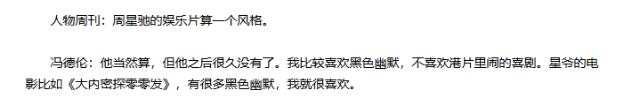 至于对周星驰“娱乐片”的看法,冯德伦表示,星爷的电影当然算(一种风格),但他之后很久没有了。