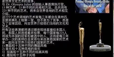奥林匹亚艺术奖(Olympia Arts Awards)奥林匹亚艺术奖是一项享有盛誉的全球盛会(庆祝艺术界的团结、 多样性和共同成功)