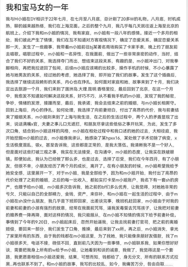 “宝马女”马诺丈夫发文控诉:她骗钱骗房骗感情