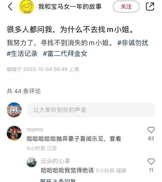 10月4日早上6点,马诺的丈夫还发文叹息,表示自己努力了,就是找不到“宝马女”。