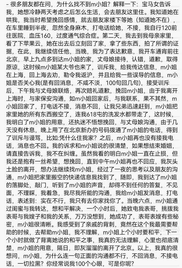 通过马诺丈夫发的长文,外界对他们的事情有了大致的了解。