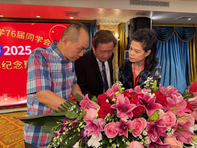 郑希来会长举杯感言:49年风雨未能冲淡七六届同学的烙印,这份情是刻在骨血里的图腾!郑希來会长现场的感言,更让同学激动万分,掌声雷动!他表示助力为同学们追梦。在常委委员郑希來,杨力群,王秋明、郑美新、郑淑珠、林有锋、林芳、陈玉钦、郭建钦, 陈玉钦. 杨修宏共同努力下,使七六届同学会蒸蒸曰上,使七六届同学会更加辉煌!