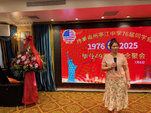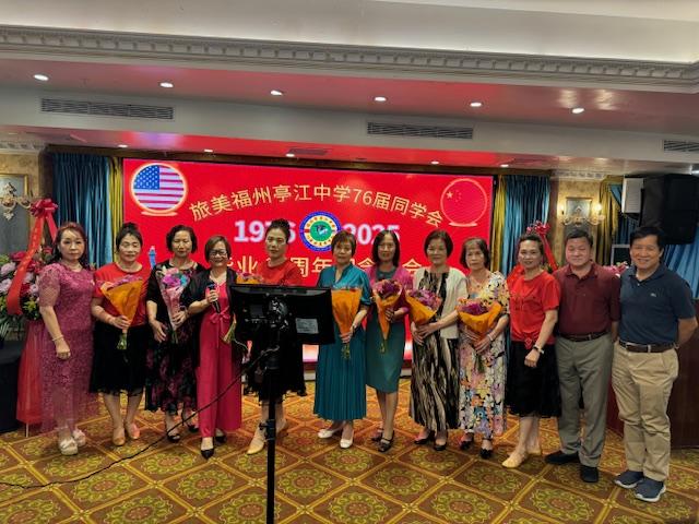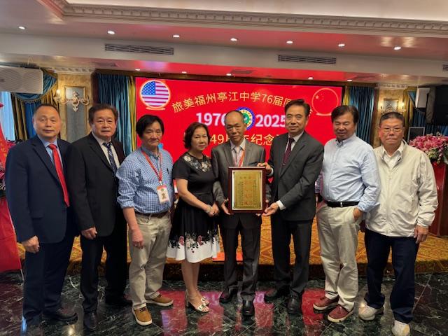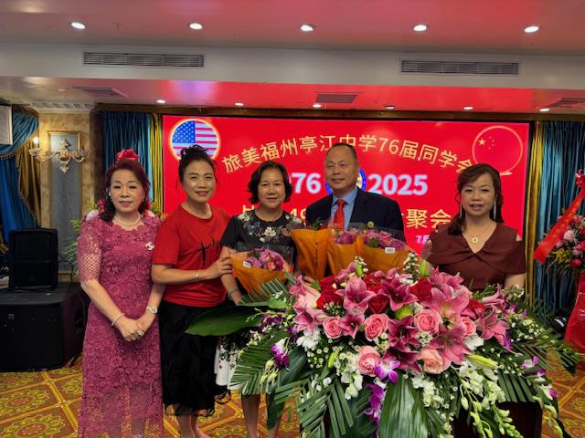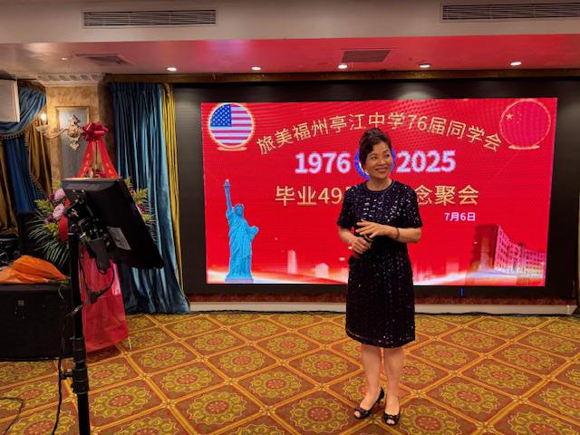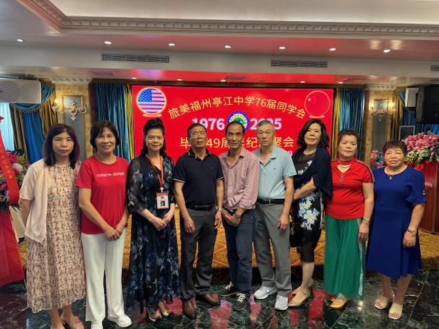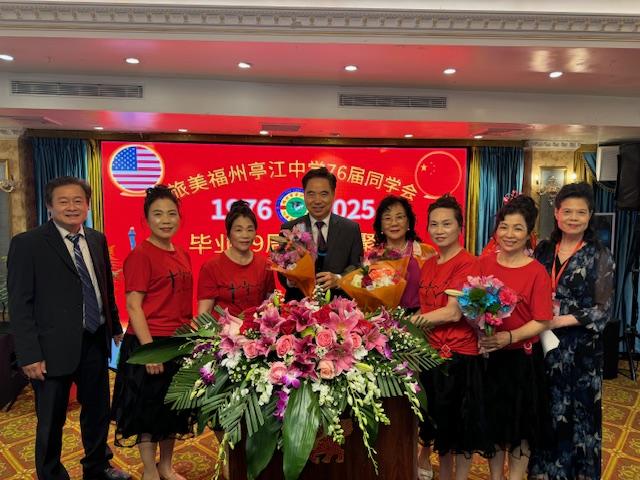 7月6日,旅美福州亭江中学七六届同学会,百名同窗跨越半世纪聚首 ,共叙芳华再燃同窗情。在纽约唐人街麒麟金阁大酒楼五楼华灯璀璨,旅美亭江中学七六届毕业49周年联欢盛会在此盛大启幕。百余位校友跨越州界,从全美各地奔赴而来。当皱纹染鬓的双手再次紧握,当乡音未改的笑语响彻厅堂,跨越49载的青春记忆如潮水般涌流——此刻,异国重逢的泪水与欢笑,都化作对青葱岁月最炽热的告白。
