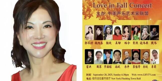 由中美声乐艺术家联盟主办的《情满金秋音乐会》将于2025年9月28号(星期天),晚6:30分在法拉盛市政厅隆重举行。中美声乐艺术家联盟成立于2017年,是由旅美的声乐艺术家和在美国留学的声乐专业的学生组成。学生们是来自于国内各大音乐学院的优秀音乐人才来美国继续深造,都是在读的硕士和博士声乐家。多年来联盟在卡内基,林肯中心和社区举办了多场音乐会,为活跃在纽约大都会艺术中心及华人社区舞台的艺术家们提供了文化交流的广阔平台,并得到广泛的支持与赞誉!获得纽约市政府颁发的音乐服务社会的杰出贡献奖。