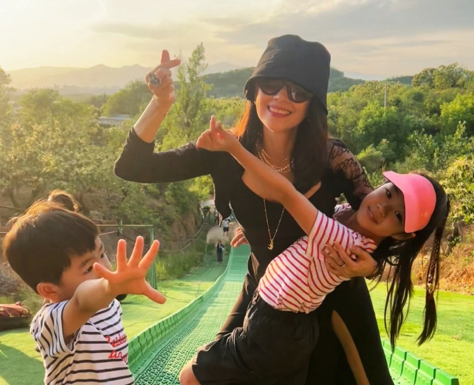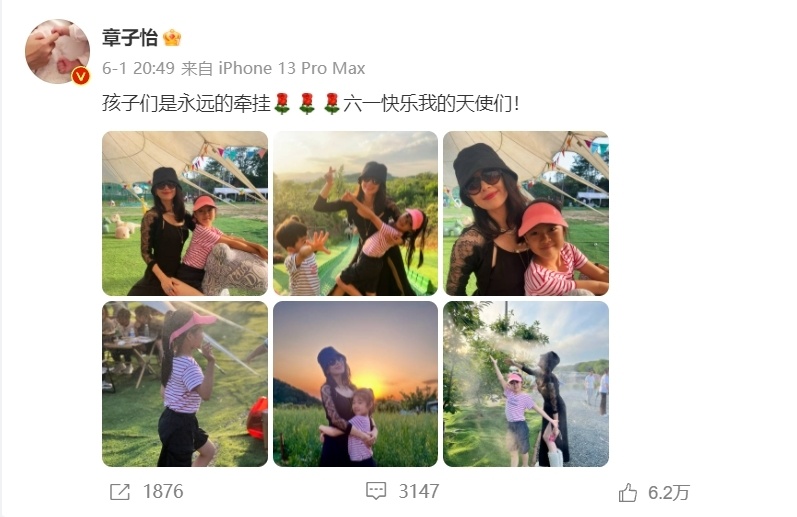 6月1日晚,章子怡晒出与孩子们共庆六一的照片,一家三口正在草地快乐地玩耍,在夕阳的映照下,整个画面显得格外温馨。