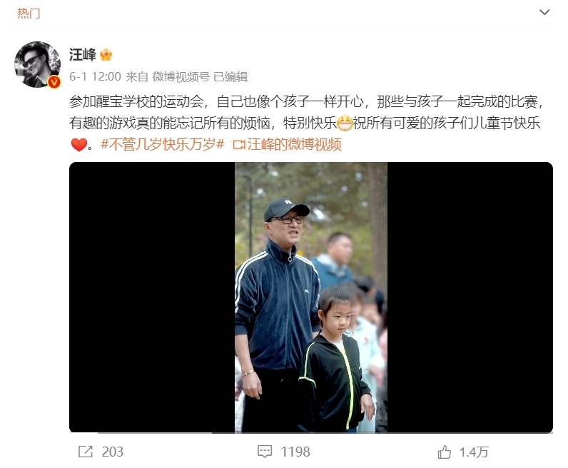 和很多明星一样,著名摇滚歌手汪峰也在六一当天更新社交账号,晒出一段陪女儿醒醒参加六一活动的视频,还为广大小朋友们送上了节日祝福。