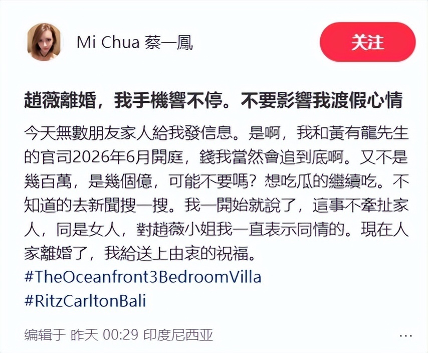 港媒曝赵薇主动公布离婚日期 当天清空黄有龙公司股票 无需为前夫还债