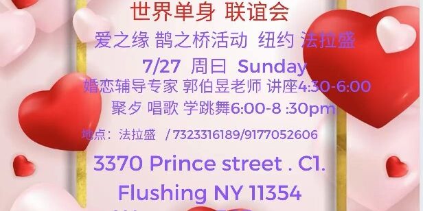 爱之缘 鹊之桥 –世界单身联谊会活动 New York City Flushing