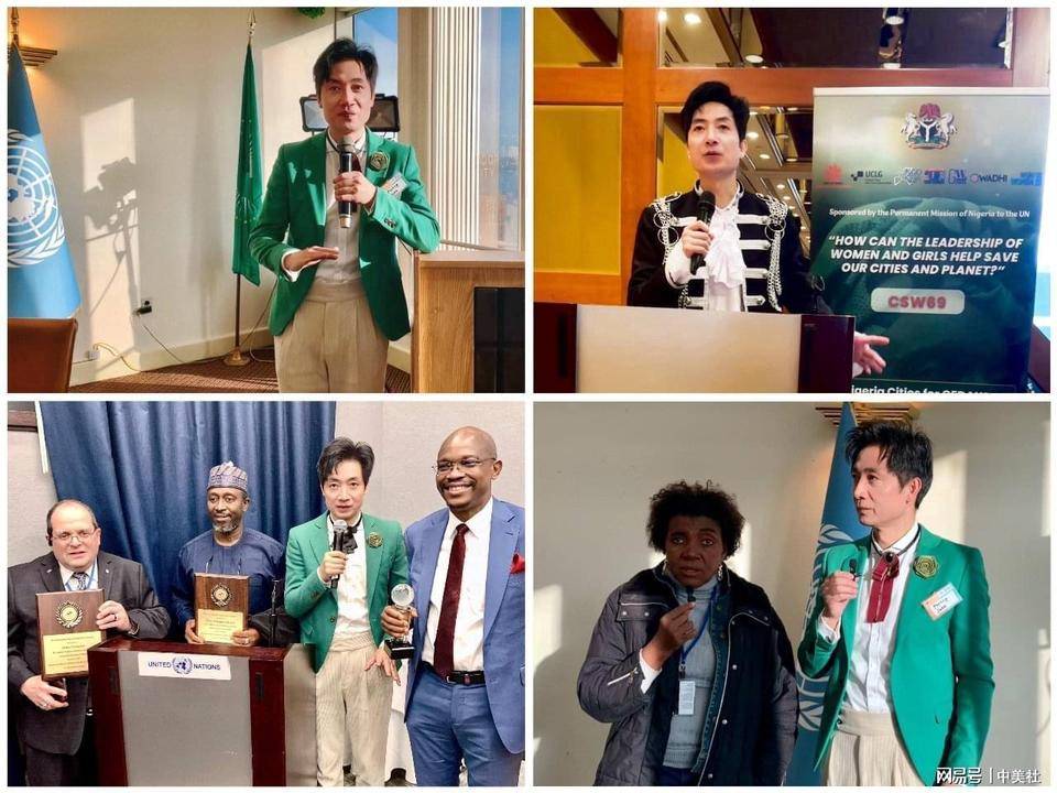On International Women’s Day, March 8, he filmed a flash mob at the Metropolitan Museum with the Global Chinese Women’s Cultural Association and spoke and sang love songs at the U.S. Peace Foundation’s celebration, conveying warmth to leaders from dozens of countries (The China Press).