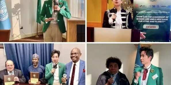 At UN Headquarters, he engaged with Queen Mother Delois Blakely, Queen Mother Makhadzi, UNESCO Ambassador Monica Sanchez, and others, interviewing lawyer Mrs. Joy and female football coach Chime, earning the title “International Friend of Women.”