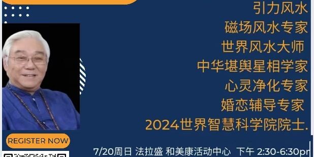 现代量子风水 引力风水 磁场风水专家 中国堪舆星相学家 心灵科学净化专家-婚恋辅导专家郭伯昱教授纽约法拉盛开讲7/20周曰和美康活动中心