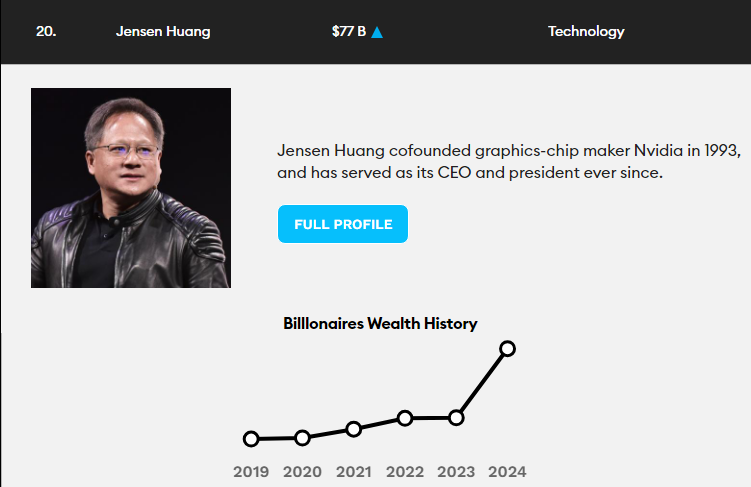 福布斯2024富豪榜公布:黄仁勋进全球前20