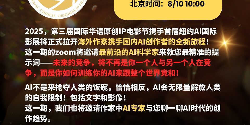 第三届国际华语原创IP 电影节系列活动8/9周六活动 Zoom Meeting