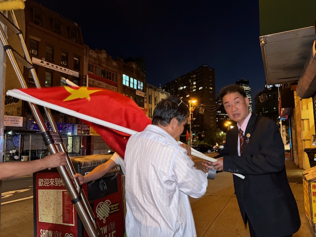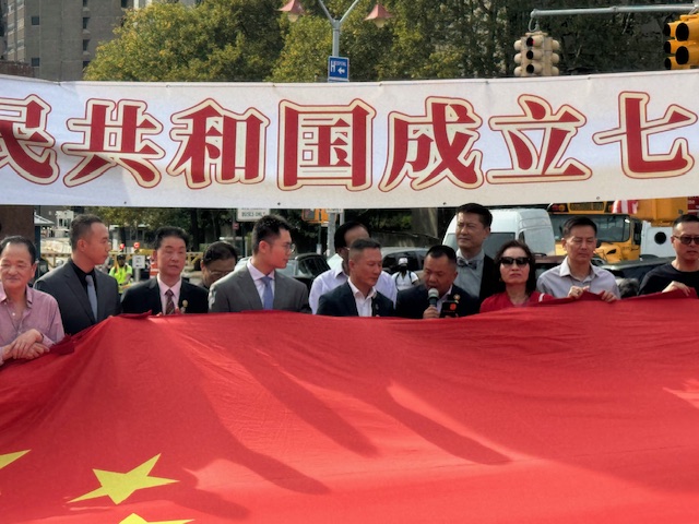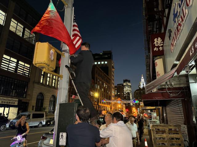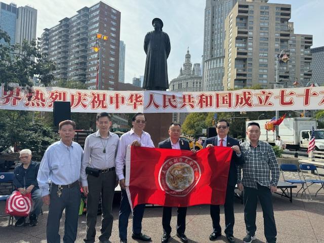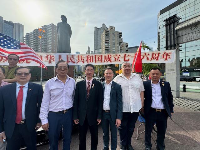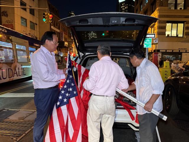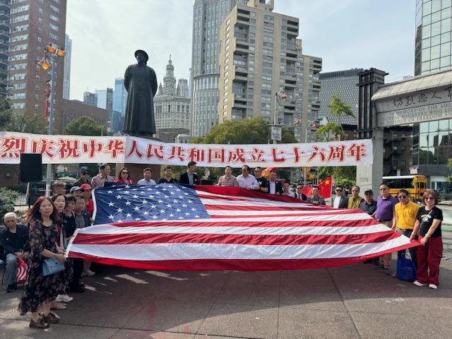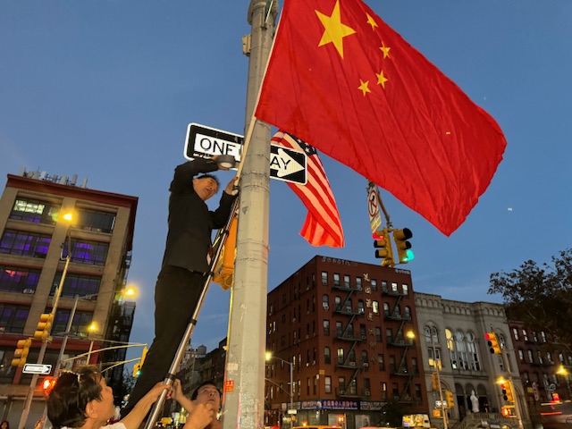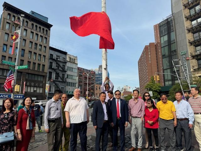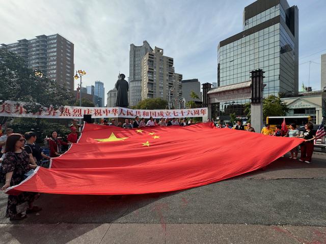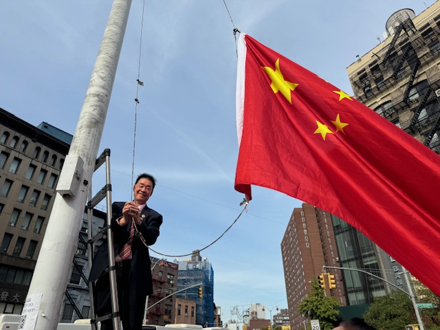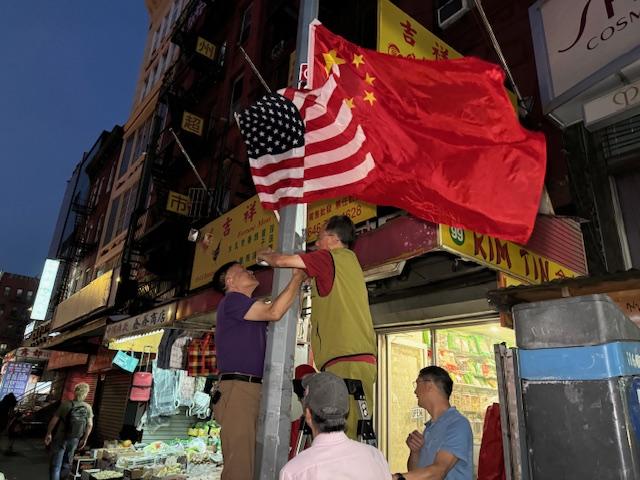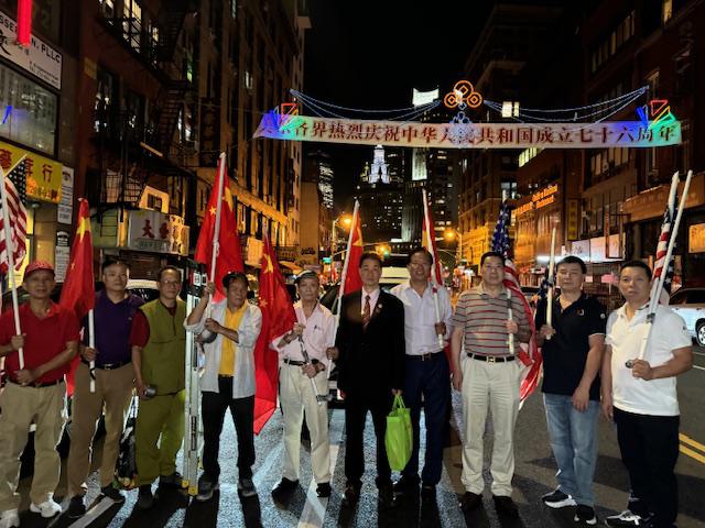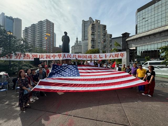 紐約僑團懸掛五百面中美國旗 同賀國慶暨中美建交 冀促两國友誼