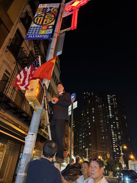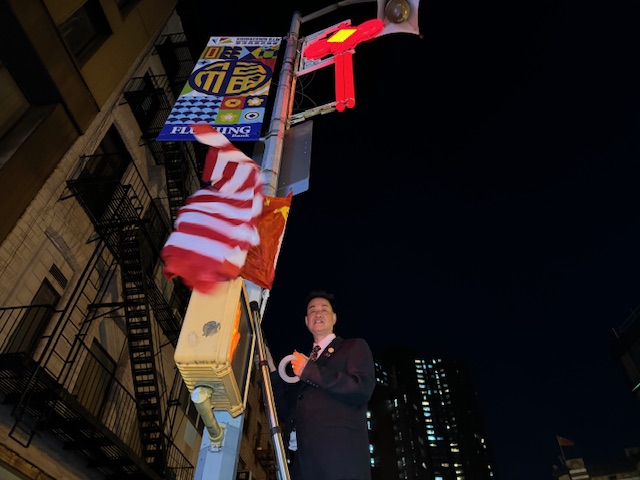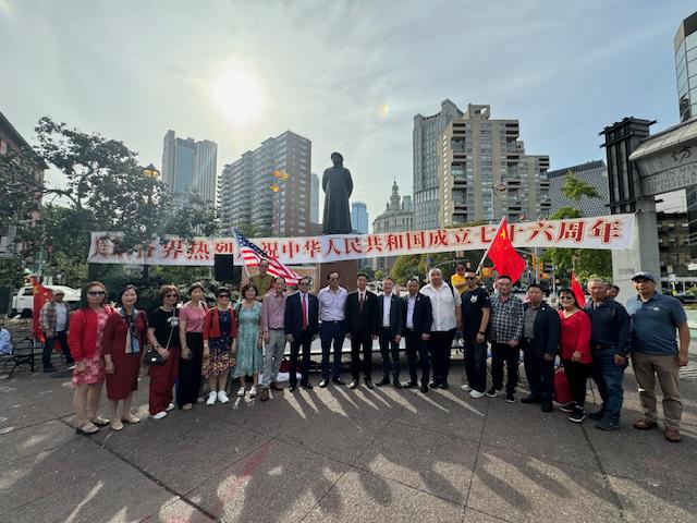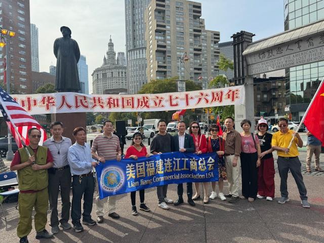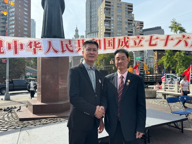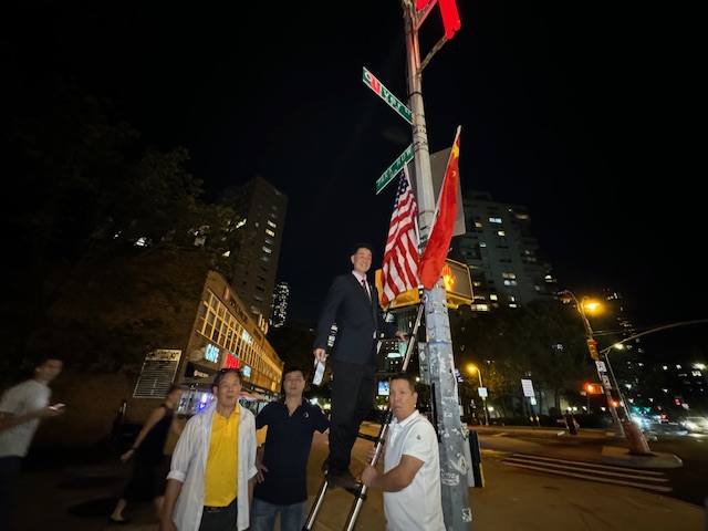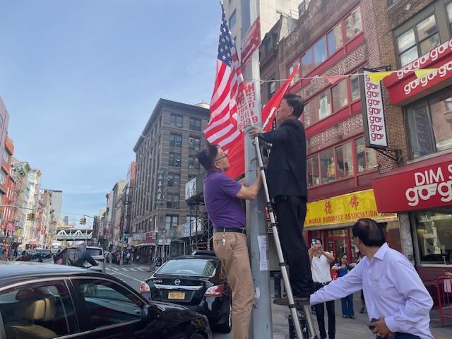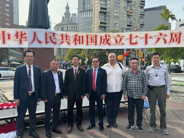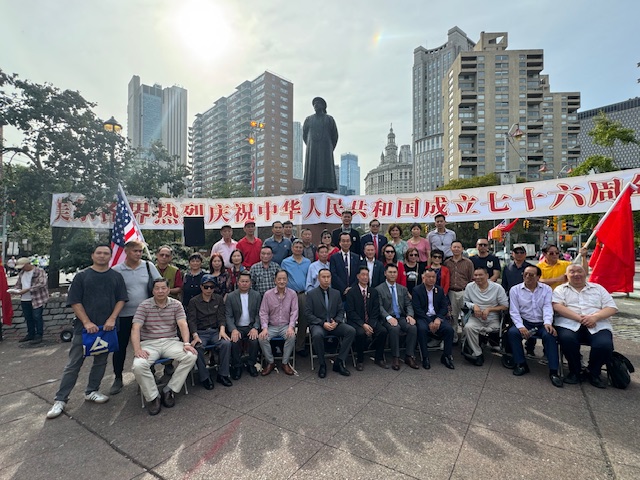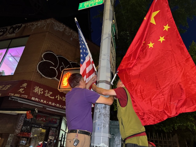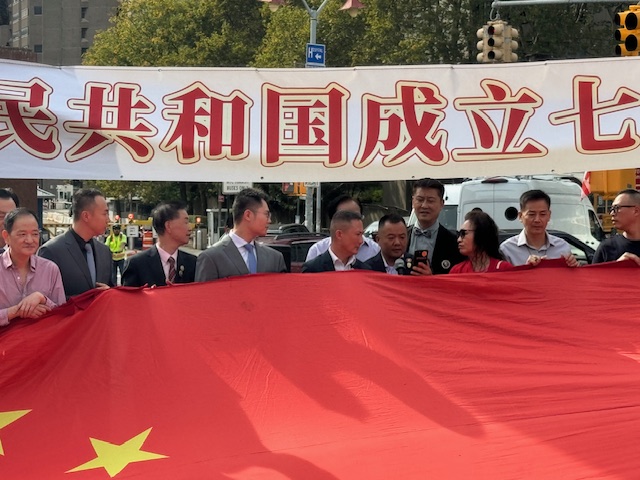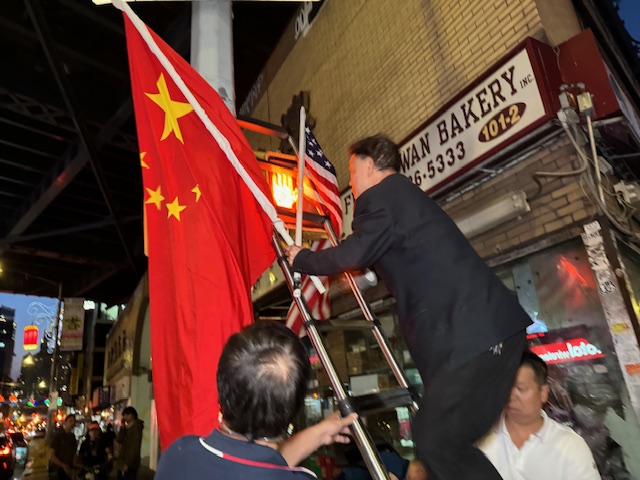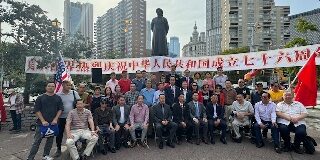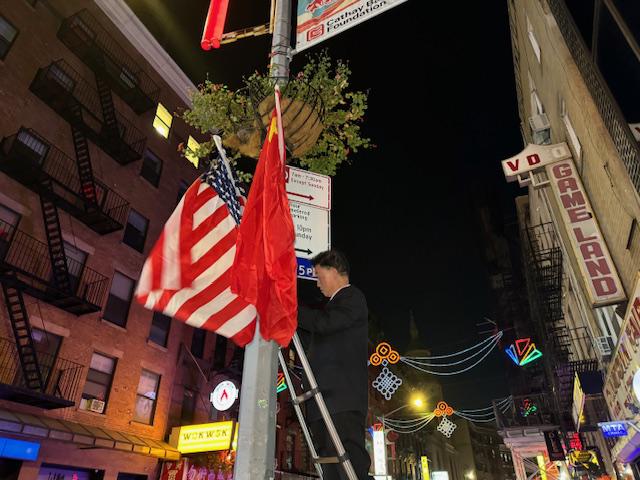 紐約僑團懸掛五百面中美國旗 同賀國慶暨中美建交 冀促两國友誼
