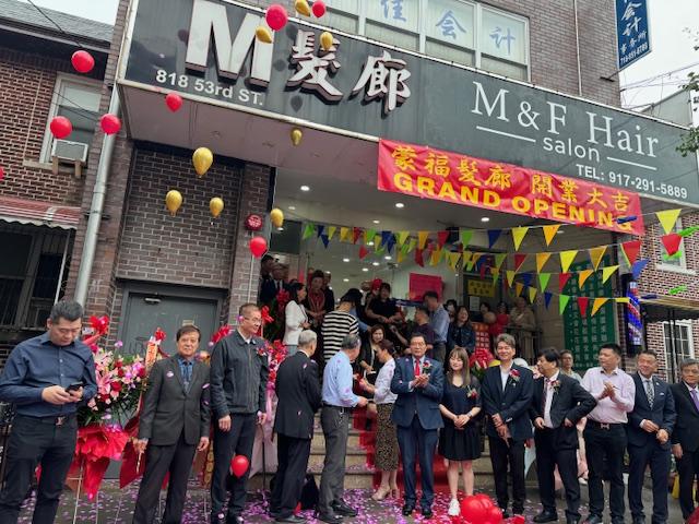 紐約閩籍侨領祝賀[蒙福髪廊]在布碌侖八大道隆重开张