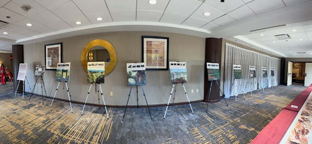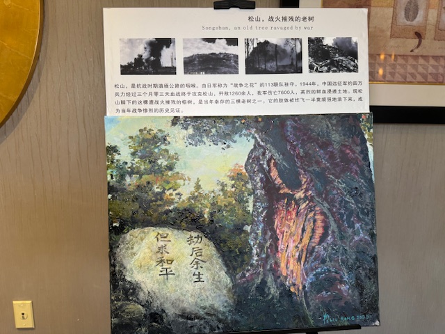 活动现场展出了应邀专程由中国昆明赶来的抗战专题著名画家,中国美术家协会会员,九三学社中央画院画家刘榕先生的绘画长卷《家园的天空》和组画《中国远征军滇西抗战遗址写生》。