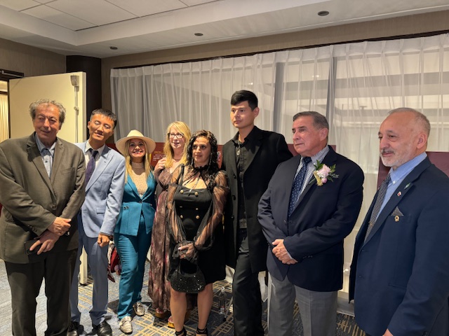 美中航空遗产基金会主席杰弗里. 格林、中國駐紐約總領事館副总领事馬蕭蕭、美國福建華人聯合總會主席李華、國際友人穆言靈、格林夫人、飛虎隊后裔克里夫明、美國福建華人聯合總會主席李華先后讲话,他们共同回顾了八十年前,世界反法西斯同盟国与中国人民并肩作战,用鲜血和生命换来了最终胜利。其中,美国付出140万美军伤亡的代价;苏联2700万军民献出宝贵生命;中国人民在极端艰苦的条件下,历经十四年浴血奋战,以三千五百万同胞伤亡的惨烈牺牲,最终赢得了抗战胜利。