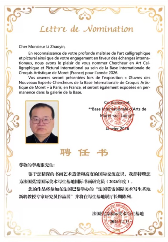 纽约书法院院长李兆银作品入展法国莫雷国际美术写生基地新聘教授研究员专家作品展