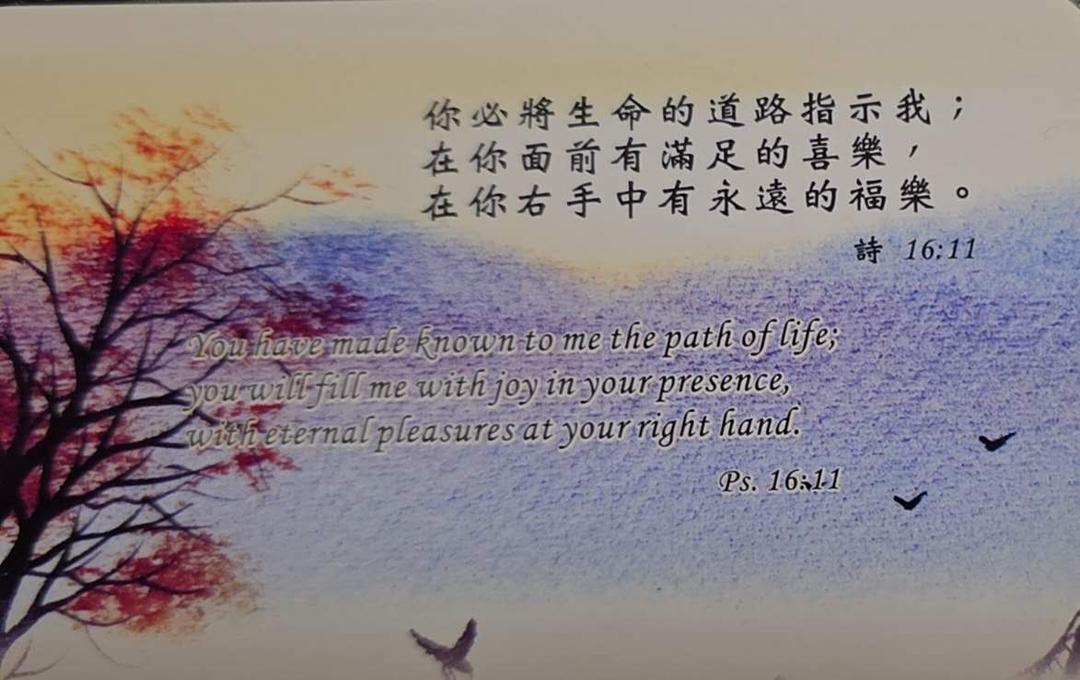 你必將生命的道路指示我。在你面前有滿足的喜樂; 在你右手中有永遠的福樂。( 詩篇 16:11 和合本 )