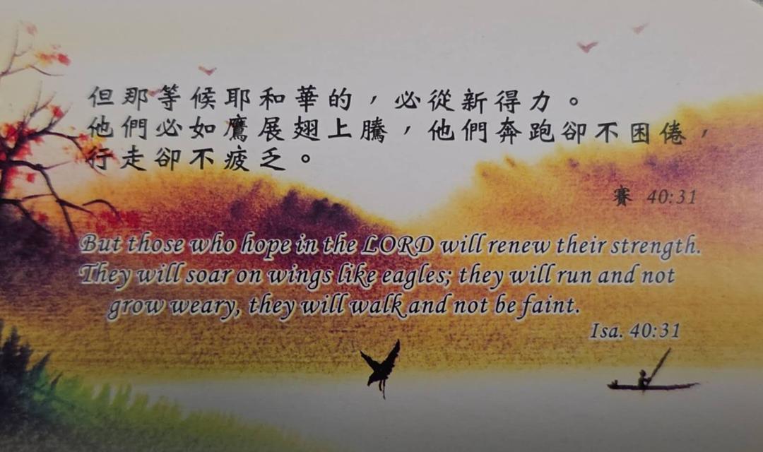 但那等候耶和華的必重新得力。他們必如鷹展翅上騰; 他們奔跑卻不困倦,行走卻不疲乏。( 以賽亞書 40:31 和合本 )