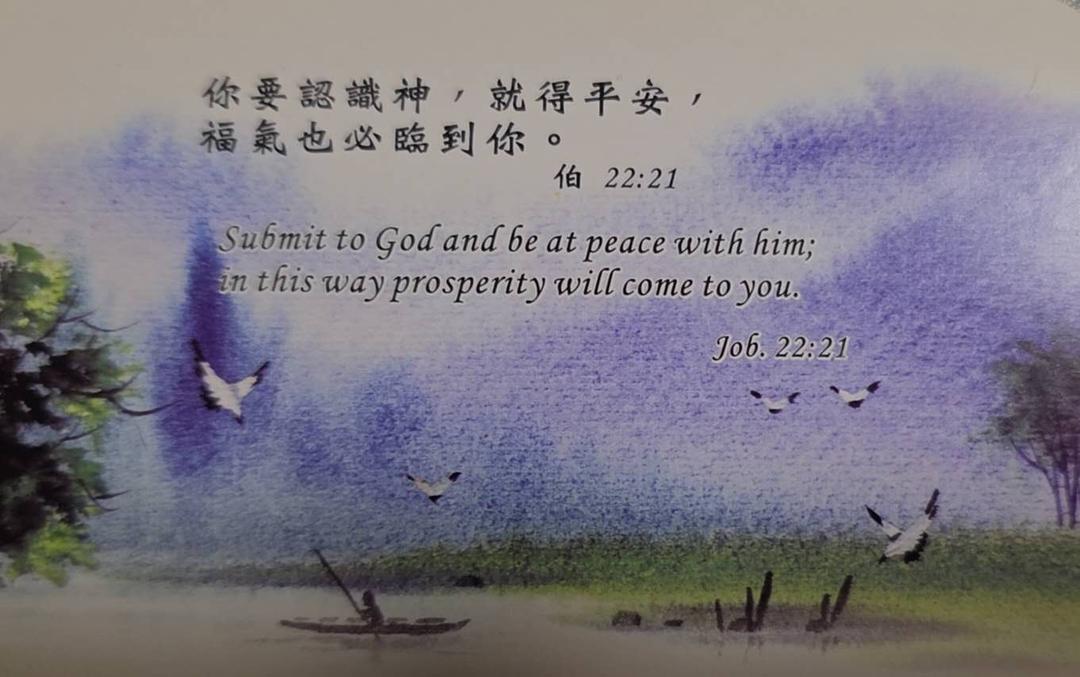 你要認識神,就得平安;福氣也必臨到你。( 約伯記 22:21 和合本 )