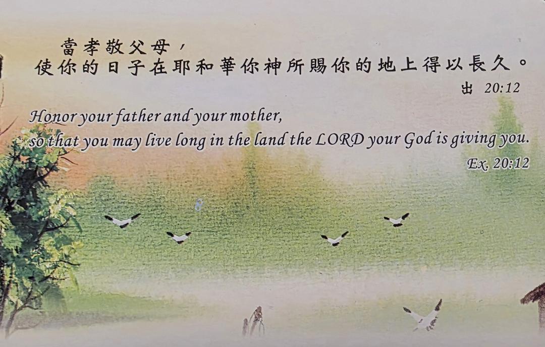 當孝敬父母,使你的日子在耶和華-你神所賜你的地上得以長久。 ( 出埃及記 20:12 和合本 )