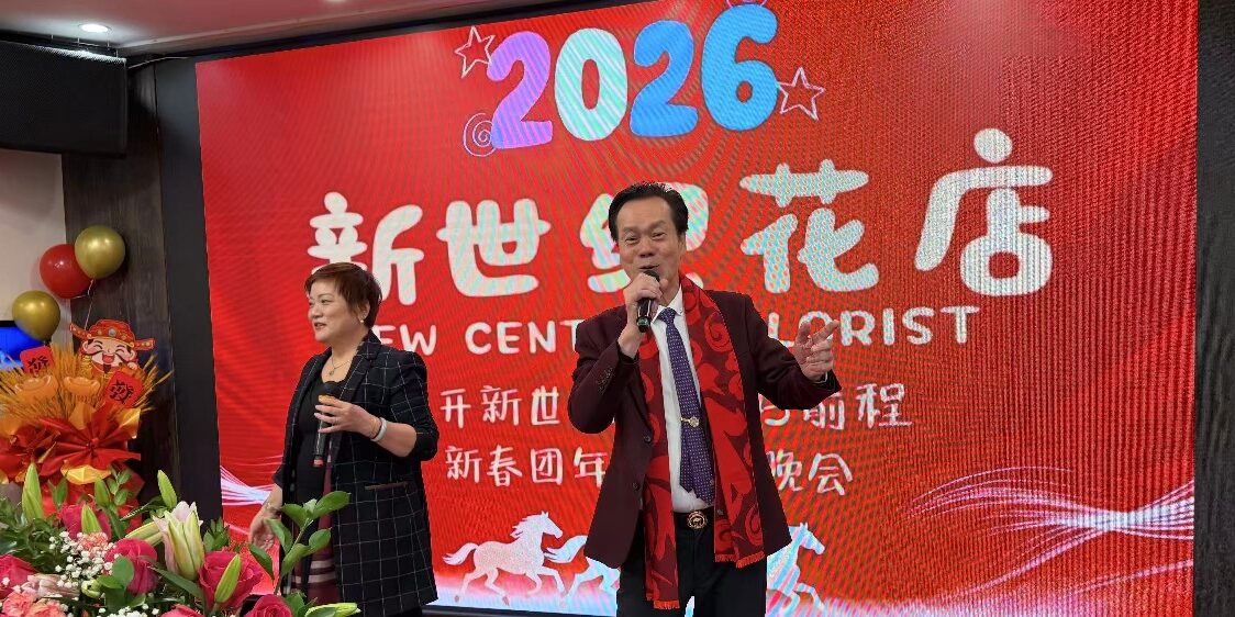 【本台讯】二月一日,座落在华人第二故乡纽约东百老汇"金泰大酒楼"华灯灿烂,歌舞升平,喜气洋洋。由紐约"新世纪花店"股份同仁举办的以"花开新世纪,马跃好前程"为主題"2026世紀花店"新春团拜联欢晚会隆重举行。出席团拜会纽约侨社团,工商团体主席,会长,嘉宾,新闻界友人共100多人,大家欢聚一堂,激情澎湃共庆"新世紀花店"隆重而順利举办迎新春团拜会活动。