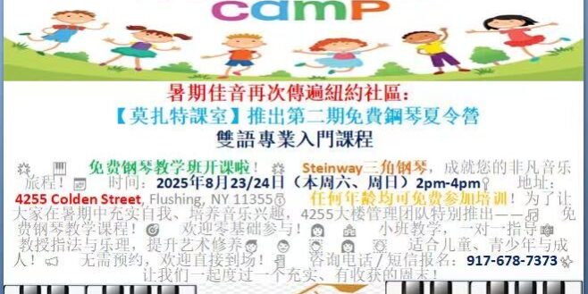 纽约莫扎特课室 推出第三期免费钢琴夏令营8/23-8/24
