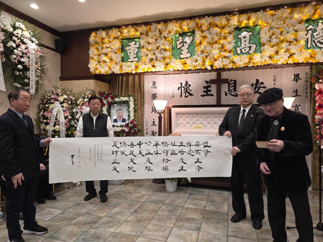 3月27日, 纽约著名社区人士王碚先生追悼会在法拉盛全福殡仪馆举行, 参加今天追悼会有纽约州参议员刘醇逸,中美文化艺术促进会, 美国亚洲艺术学会,美国东西方艺术文化协会,华策会, 美国东北同乡会,美国上海同乡会,纽约知行教育, 美国江苏友好协会,协和i门窗等机构公祭以及社区侨领王能, 林建中,陈秋贵,李天骥,李同欣,沈珺,郑德诚等约100多位社区人士。