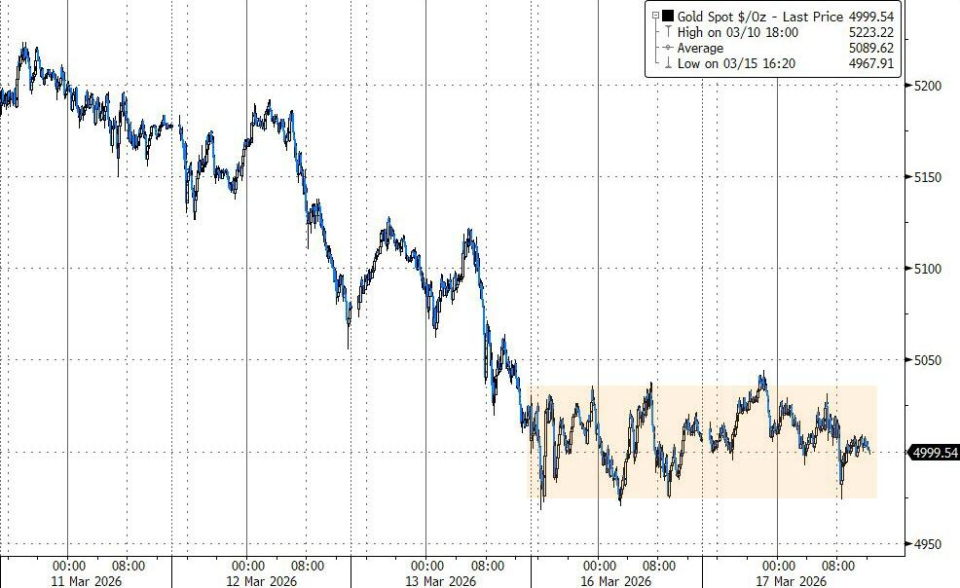 本周美元指数已经两连跌,但现货黄金价格几乎没有变动,维持在5000美元/盎司附近。