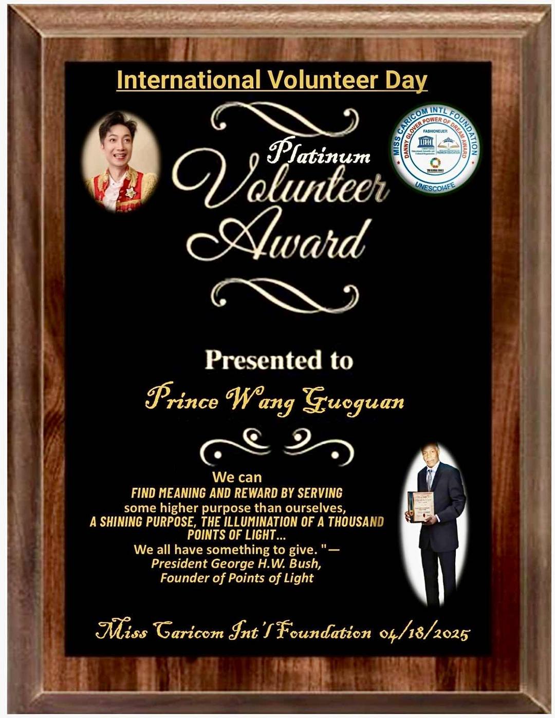 王国权荣获联合国教科文组织颁发的铂金志愿者奖