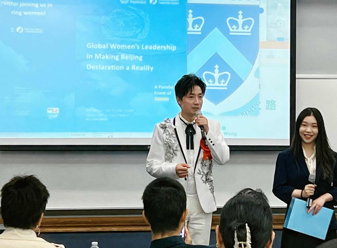 此外,他积极参与顶级学府活动:主持哥伦比亚大学全球女性领导力峰会系列活动,包括与哥伦比亚学生的圆桌论坛及出席在联合国总部外交官餐厅举行的G100峰会颁奖礼午宴,为性别平等议题注入中国视角;4月10日,他还作为唯一非耶鲁学生嘉宾,亮相耶鲁大学政治联盟的模拟政治论坛,以英国议会答辩为灵感,感受拍桌跺脚的热烈学术氛围,为论坛增添跨文化维度。这些努力赢得联合国媒体专访的盛誉。