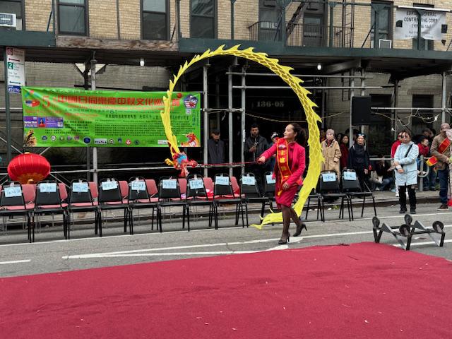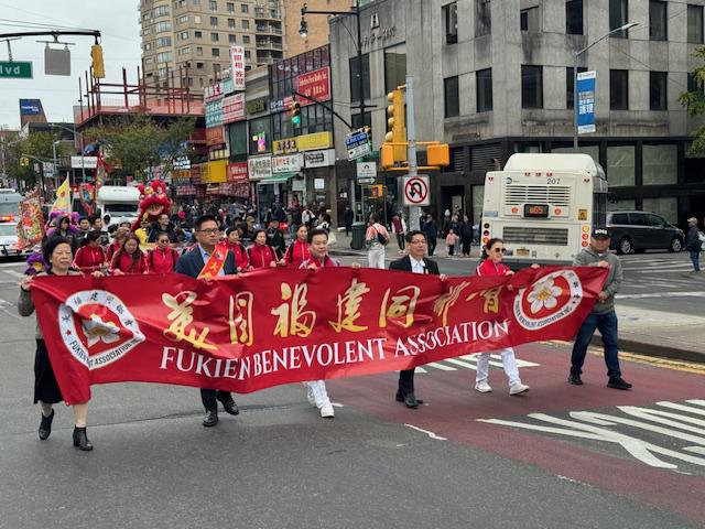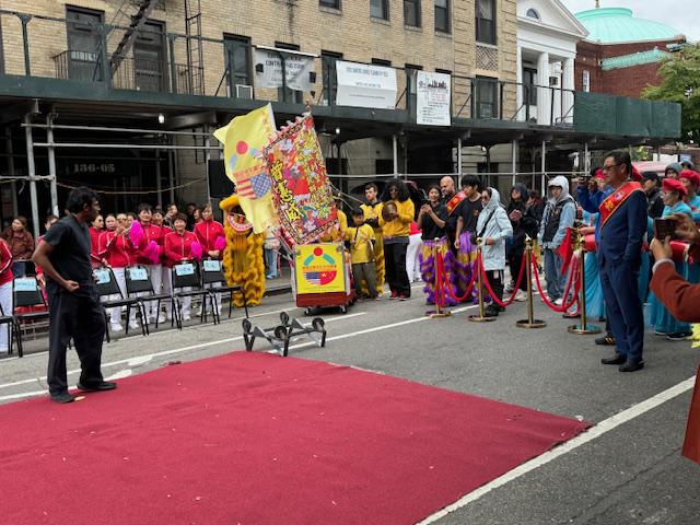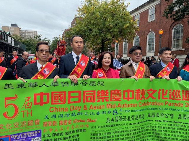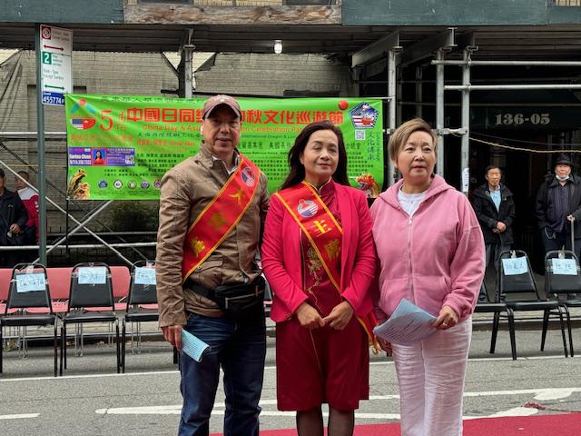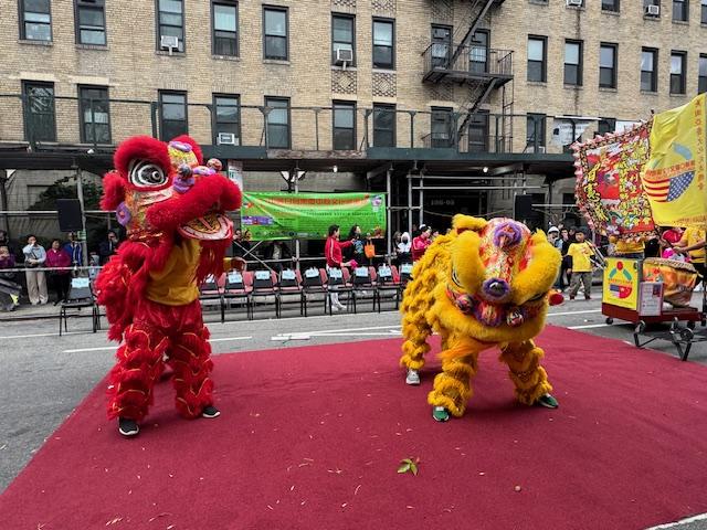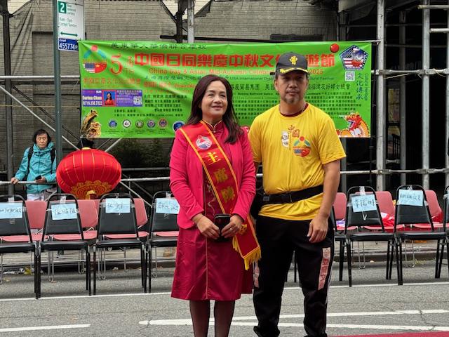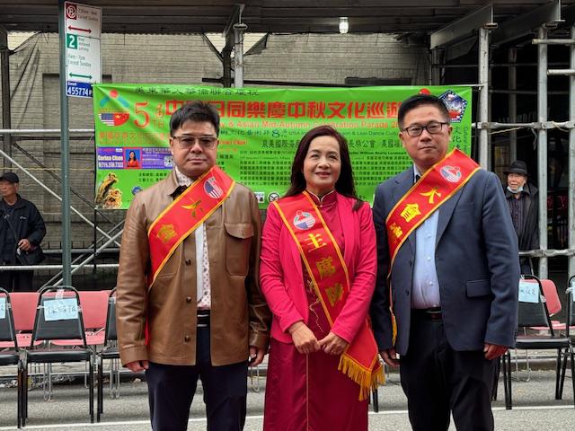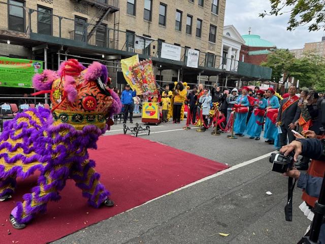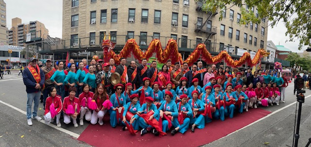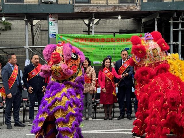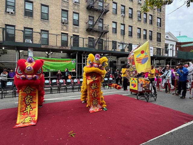 10月12日,由美國亞裔文化交流總會聯合美東華人華僑及40多個僑團 商家 舉行祝賀中華人民共和國76周年暨第五屆中國日同樂慶中秋文化巡遊節暨第八屆美國國際龍獅文化藝術節 在法拉盛緬街與三福大道隆重開幕。參加今天文化節大巡遊活動出席嘉賓有中国驻纽约總领馆领事榮頂,章悅、纽约州參議員劉享議,纽约州衆議員Ron Kim, 州衆議員Sam Berger辦公室助理 Hana Jang,纽约 市議員黃敏議,紐約市警察局長助理,109警局Detective Ares Huang, 美國亞裔文化交流總會主席陳愛金,名譽主席陳愛民,創會主席曾憲威,總顧問王綱勇、陳本風,陳崇影,高秋華,陳玉明,陳其传,焦聖安,總指揮 曹以鏡,王玉武,潘寶如,陳秋英俤,陳春國,王建忠,活動總監吳觀潮,文藝負責王慧琴,理事長潘碧燕,陳愛珍,Seena Kong以及本會30個舞龍舞獅學生,美国福建同鄉會主席陳倫東 、劉愛華,主席肋理陈春国,美國長樂公會主席盧建順,第一常務副主席陳崇影,美國福建會館主席陳昭銀,美國福建三山會館主席鄭振何,總理陳愛民,第一常務副主席施鴻宇,美國福建工商總會主席鄭偉,美國連江同鄉會主席張雲,美国中美友好总会主席卢天星、美國井美同鄉會主席曾昌忠以及美國亭江同鄉主席林菥,美國福建慈善基金會主席林德明及僑團商家。文藝:109 precinct Community Affairs ,紐約美華輔警恊會(NYAPA),NYS Law Enforcement & Community Council ,Queen’s Ballroom Dance, Keller Willing Realty Landmark, 美國福建嶺南同鄉總會,美國福建大宏聯合總會,美國曹珠聯誼會,美國福建碧嶺聯合會,美國福建馬尾海外聯合總會,美國福建浮岐誼聯誼會,美國福建澤里聯誼會,美國福建長樂南鄉聯合總會,美國長樂三溪聯誼會,美國福建玉田羅連聯合總會,美國長樂菊潭同鄉會,美國福建文溪聯誼會,美國福建福星同鄉會,美國福建琅岐海嶼同鄉會,美國福州亭江聯合總會,美國福建慈善基金會,美國福建西邊僑聯會,美國福建英嶼同鄉會,美國福建猴嶼聯誼會,美國長樂北山聯合總會,中美文化藝術交流恊會,美國婦女發展基金會,紐約燦爛藝術團,紐約龍開心腰鼓隊,英姿姐妹舞之團,美國廣西青年學友會朱繼青主席,北美共創會名譽主席王晟,上海同鄉會主席周允,歷勝利及幾十個團體及多個文藝舞蹈表演團隊近千人參與活動!主持人王早早