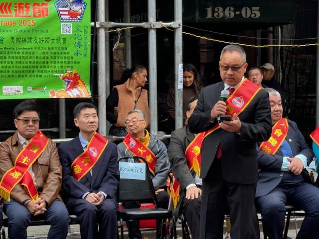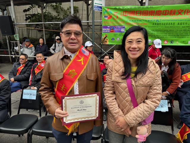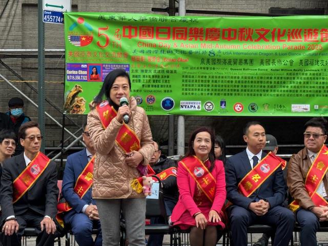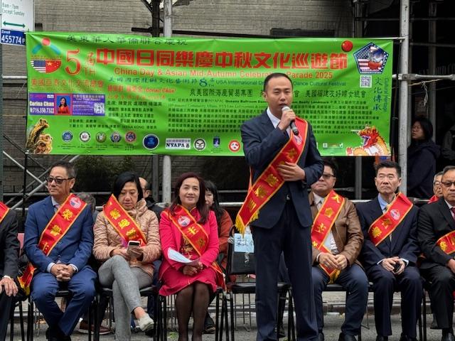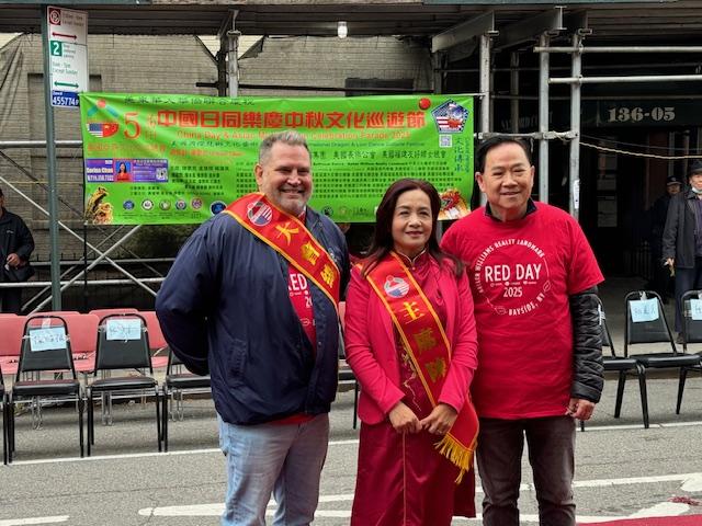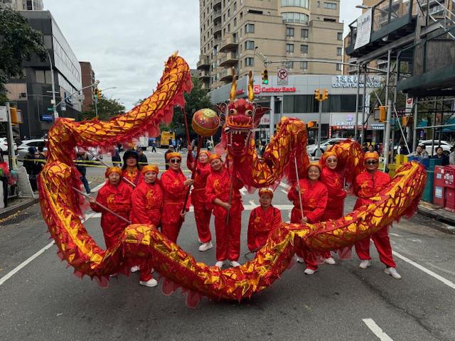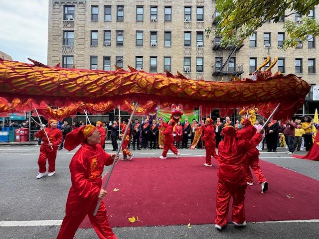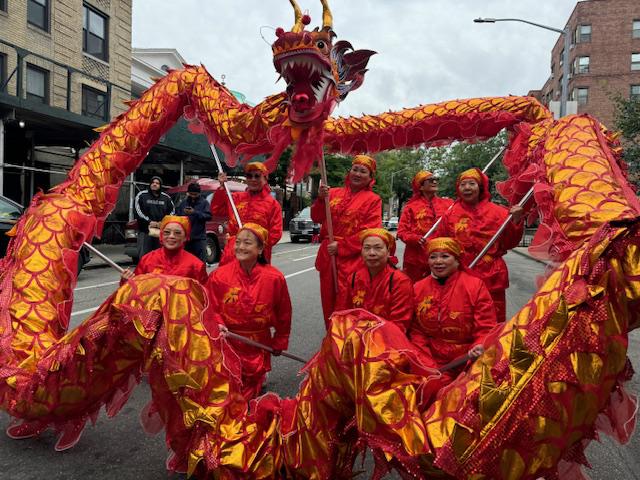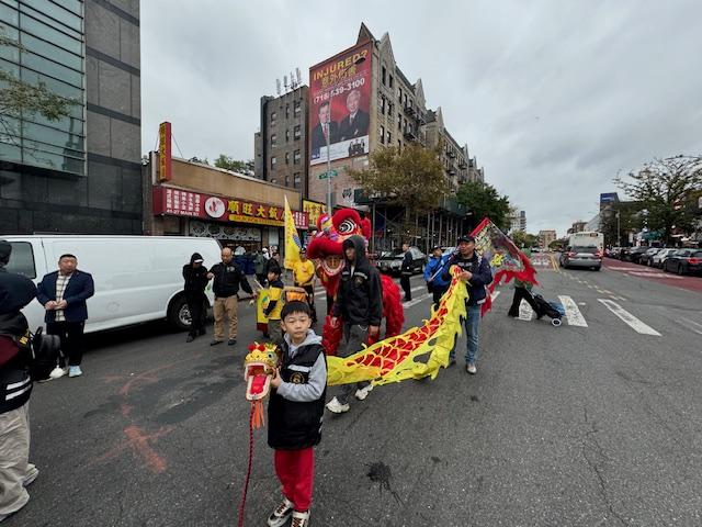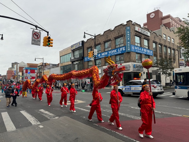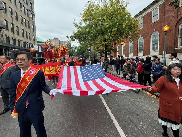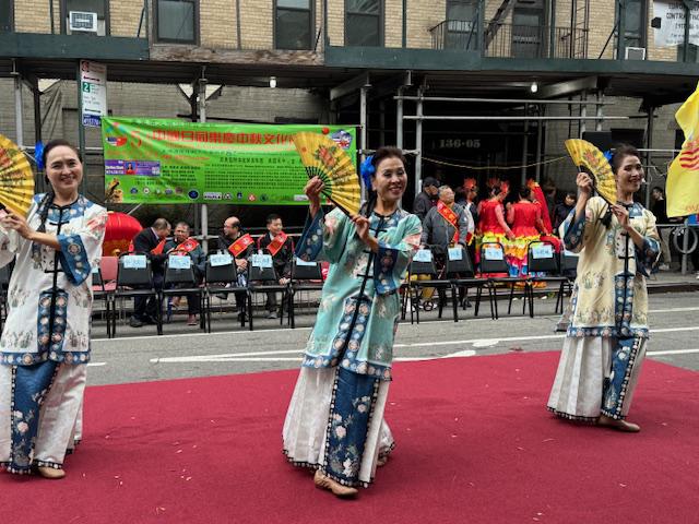 10月12日,由美國亞裔文化交流總會聯合美東華人華僑及40多個僑團 商家 舉行祝賀中華人民共和國76周年暨第五屆中國日同樂慶中秋文化巡遊節暨第八屆美國國際龍獅文化藝術節 在法拉盛緬街與三福大道隆重開幕。參加今天文化節大巡遊活動出席嘉賓有中国驻纽约總领馆领事榮頂,章悅、纽约州參議員劉享議,纽约州衆議員Ron Kim, 州衆議員Sam Berger辦公室助理 Hana Jang,纽约 市議員黃敏議,紐約市警察局長助理,109警局Detective Ares Huang, 美國亞裔文化交流總會主席陳愛金,名譽主席陳愛民,創會主席曾憲威,總顧問王綱勇、陳本風,陳崇影,高秋華,陳玉明,陳其传,焦聖安,總指揮 曹以鏡,王玉武,潘寶如,陳秋英俤,陳春國,王建忠,活動總監吳觀潮,文藝負責王慧琴,理事長潘碧燕,陳愛珍,Seena Kong以及本會30個舞龍舞獅學生,美国福建同鄉會主席陳倫東 、劉愛華,主席肋理陈春国,美國長樂公會主席盧建順,第一常務副主席陳崇影,美國福建會館主席陳昭銀,美國福建三山會館主席鄭振何,總理陳愛民,第一常務副主席施鴻宇,美國福建工商總會主席鄭偉,美國連江同鄉會主席張雲,美国中美友好总会主席卢天星、美國井美同鄉會主席曾昌忠以及美國亭江同鄉主席林菥,美國福建慈善基金會主席林德明及僑團商家。文藝:109 precinct Community Affairs ,紐約美華輔警恊會(NYAPA),NYS Law Enforcement & Community Council ,Queen’s Ballroom Dance, Keller Willing Realty Landmark, 美國福建嶺南同鄉總會,美國福建大宏聯合總會,美國曹珠聯誼會,美國福建碧嶺聯合會,美國福建馬尾海外聯合總會,美國福建浮岐誼聯誼會,美國福建澤里聯誼會,美國福建長樂南鄉聯合總會,美國長樂三溪聯誼會,美國福建玉田羅連聯合總會,美國長樂菊潭同鄉會,美國福建文溪聯誼會,美國福建福星同鄉會,美國福建琅岐海嶼同鄉會,美國福州亭江聯合總會,美國福建慈善基金會,美國福建西邊僑聯會,美國福建英嶼同鄉會,美國福建猴嶼聯誼會,美國長樂北山聯合總會,中美文化藝術交流恊會,美國婦女發展基金會,紐約燦爛藝術團,紐約龍開心腰鼓隊,英姿姐妹舞之團,美國廣西青年學友會朱繼青主席,北美共創會名譽主席王晟,上海同鄉會主席周允,歷勝利及幾十個團體及多個文藝舞蹈表演團隊近千人參與活動!主持人王早早