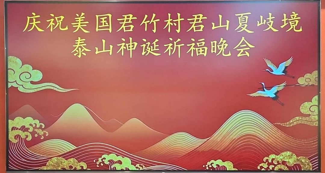 美國君竹聯誼會会长任奇表示:庆祝君竹村君山夏岐境泰山千秋神诞、祈求泰山爷威灵显应保佑弟子在美国生活年年顺利!一年一度的美国君竹乡泰山神诞祈福晚会又来到了,在此,我谨代表美国君竹联谊会及美国君竹乡泰山神诞基金的全体同仁向来参加晚会的乡亲、亲戚、朋友们表示热烈的欢迎和最诚挚的祝福。愿泰山爷大人保佑您们合家健健康康、平平安安、顺顺利利。
