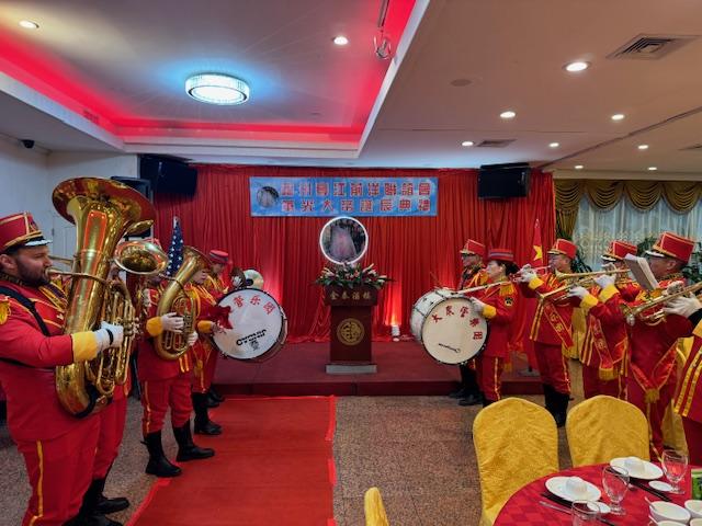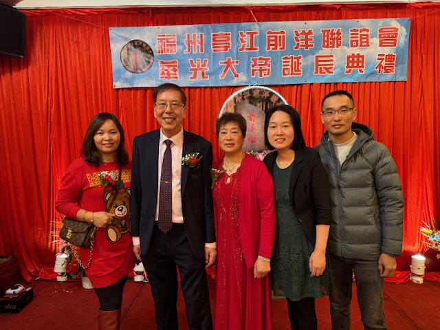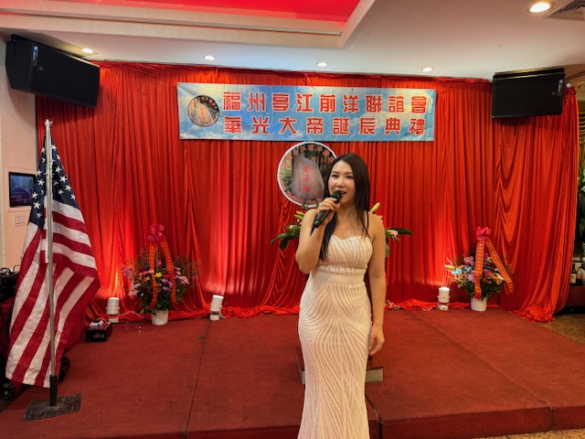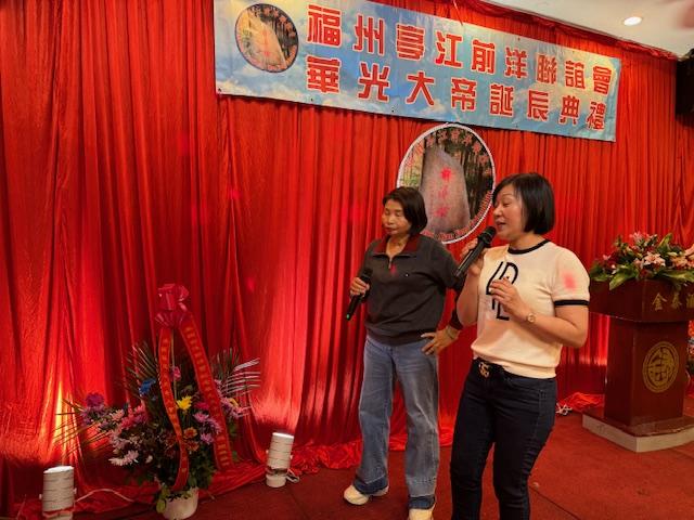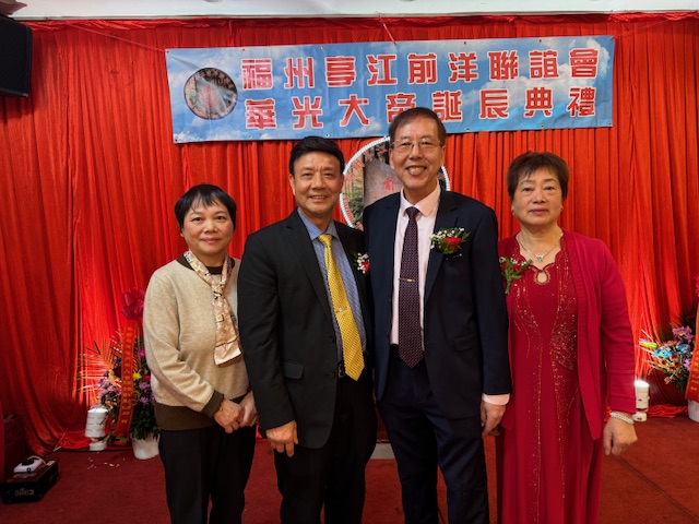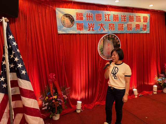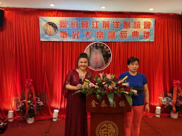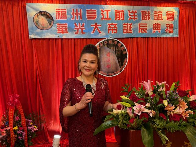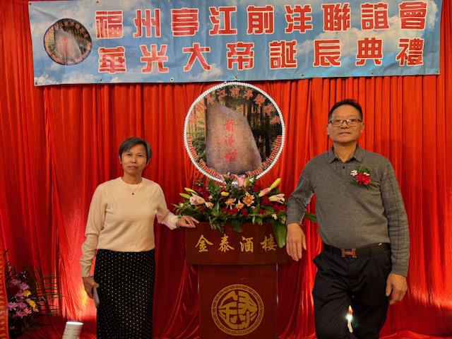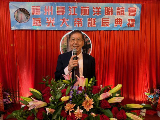 美国福州亭江前洋联谊会主席郑修富致词:今天我怀着无比喜悅的心情、向我村神誕保佑我们在异地求萬福平安,祝贺華光大帝神誕活動日子,有年輕弟子願意献资,使今天的歌舞、乐隊、舞獅等節目,更加气氛热闹,办得紅紅火火、开开心心。在这里我也非常感謝全体贵賓、乡親们在百忙之中抽出保贵時间来金泰大酒楼参加聚會活动。祝願前洋聯誼会合鄉平安、繁榮昌盛、身體健康、萬事如意!